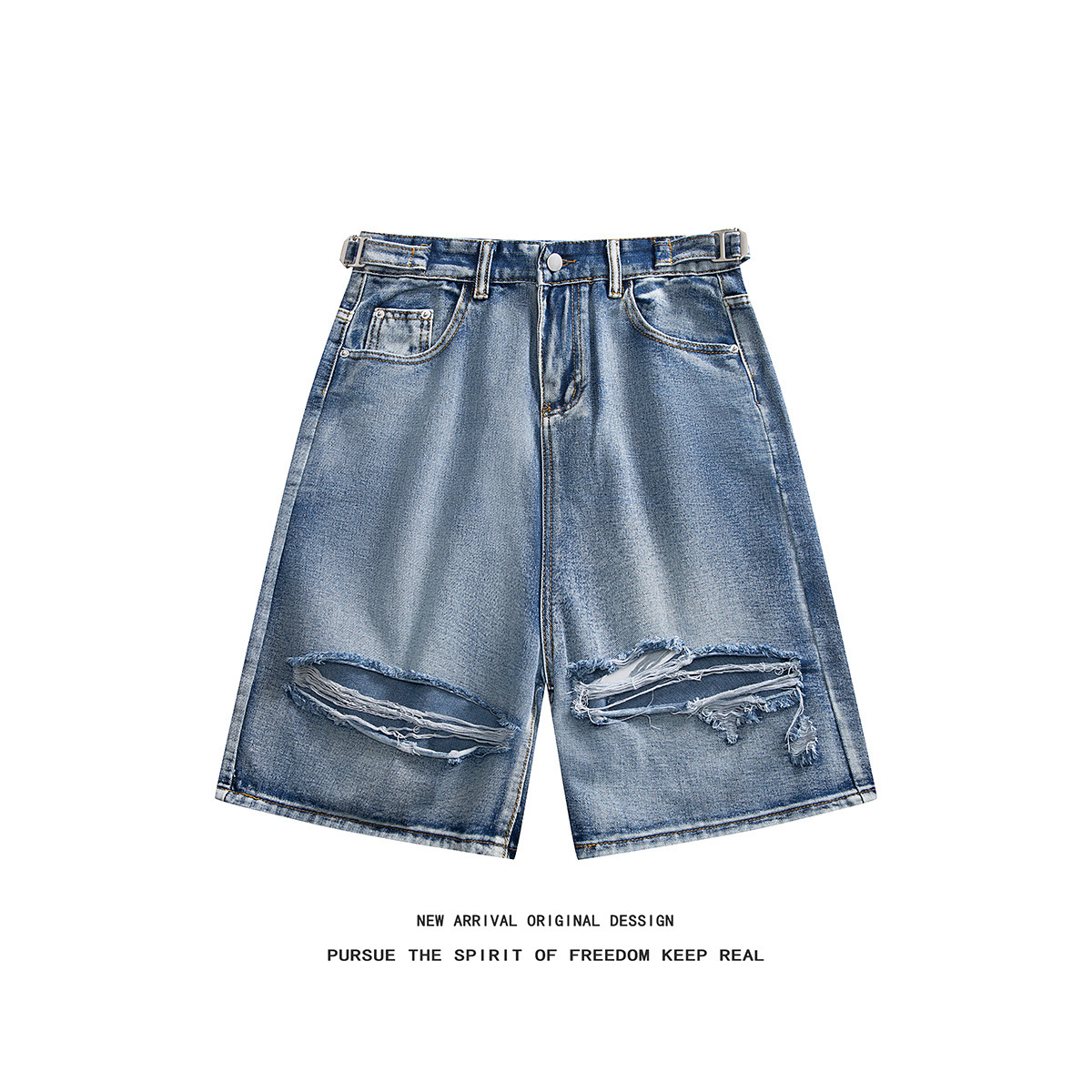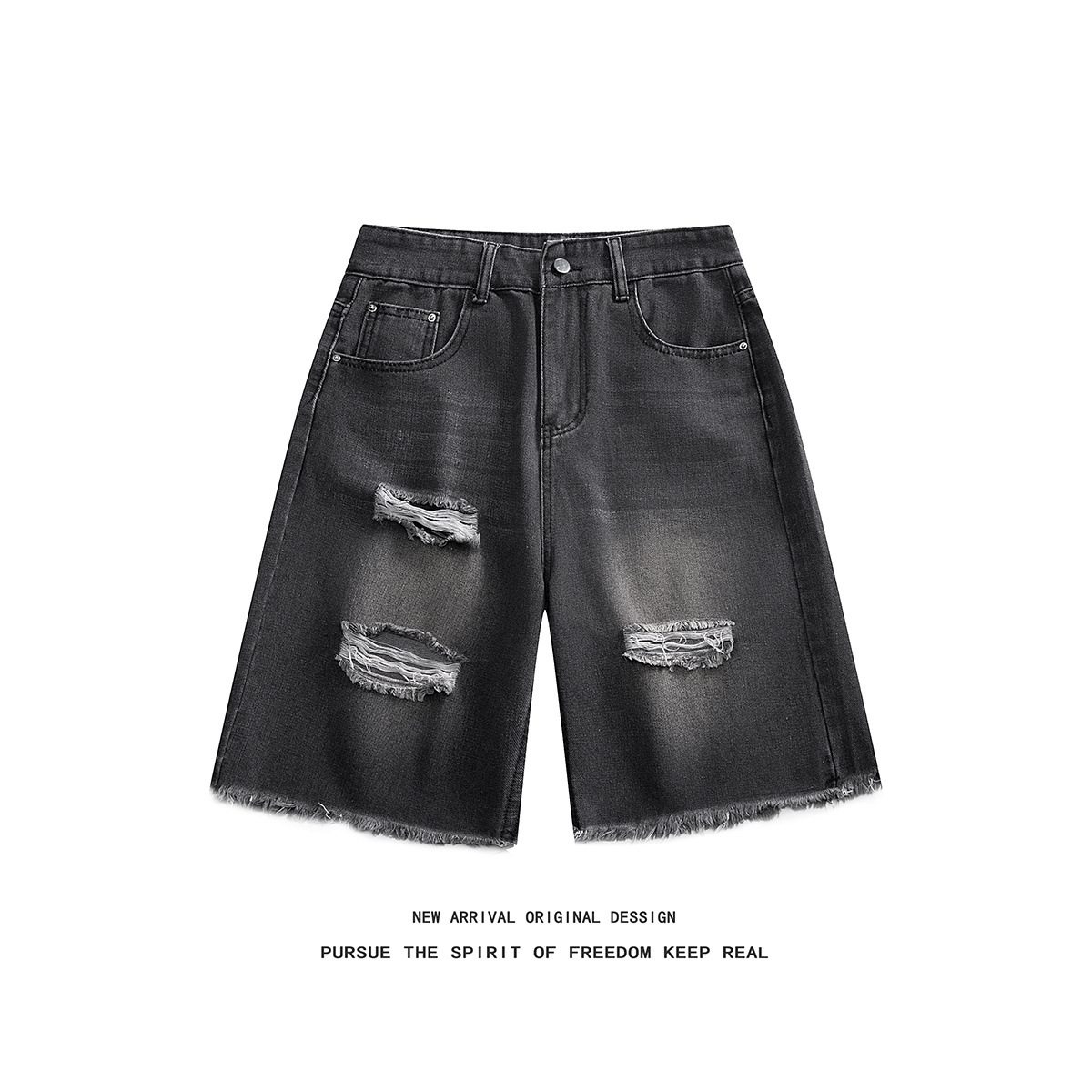 夏薄型リップドデニムショートパンツメンズ夏ウォッシュドクォーターレディースルーズプラスサイズメンズパンツ