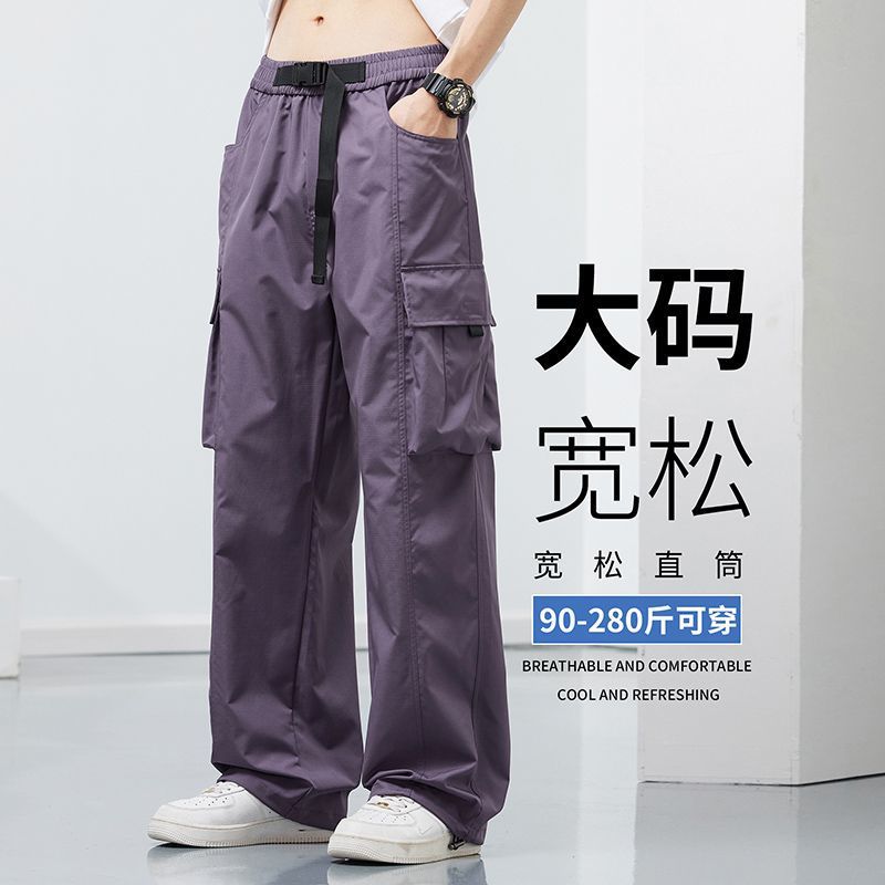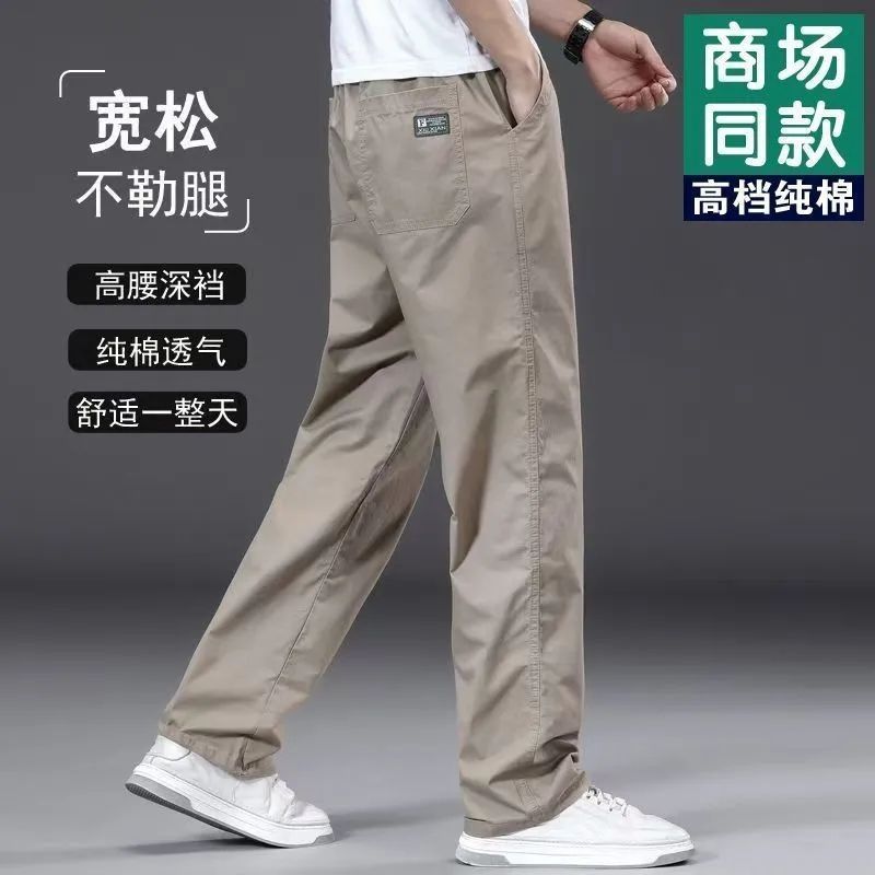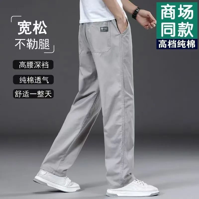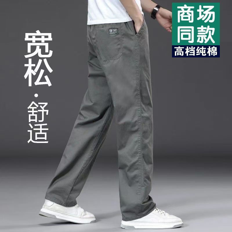 メンズカジュアルパンツ夏薄い純綿ルーズ大きいサイズストレートアウトドアスポーツカジュアルオーバーオールロングパンツ男性用