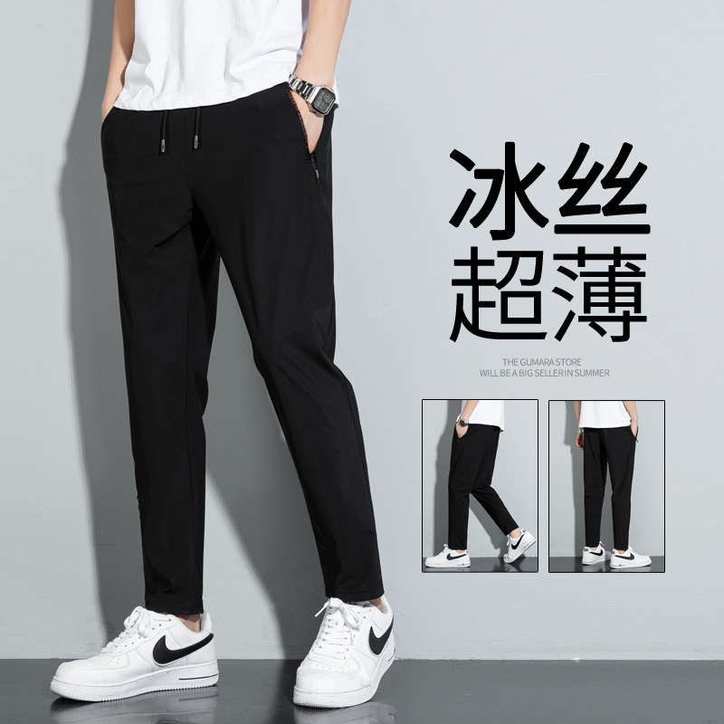 アイスシルクパンツスポーツ夏薄型速乾パンツ高弾性ファッション多用途通気性向上メンズカジュアルパンツルーズ