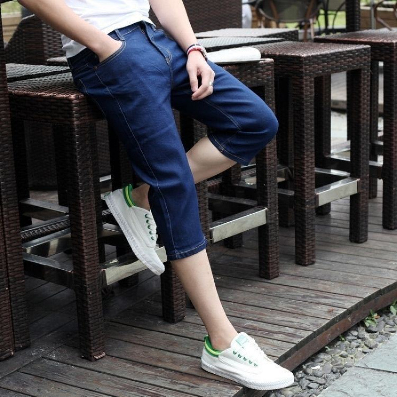 5点パンツ 若者通勤風プリント染めミッドウエスト大きいサイズ速乾微弾性アイスフィールデニムメンズトレンド