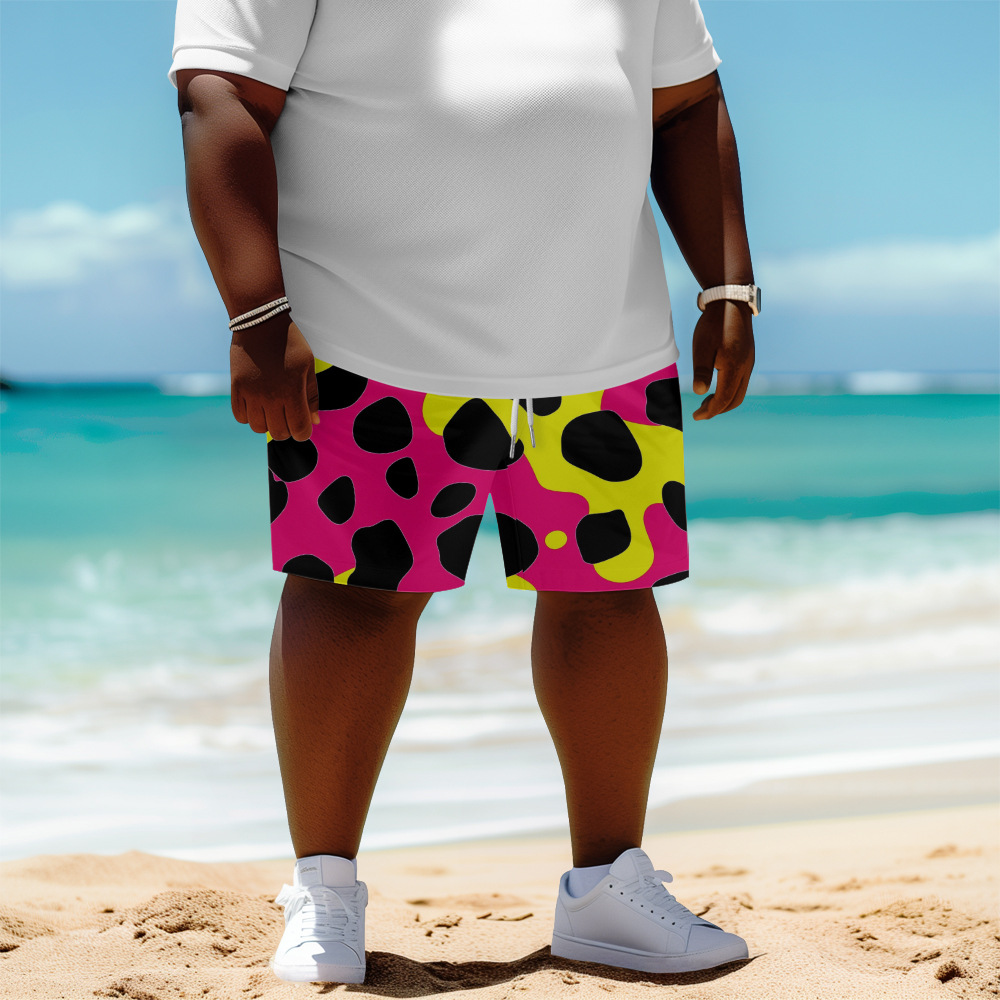 プラスサイズのファットショーツ夏カジュアルルーズトレンディメンズクォーターパンツパーソナライズされたクリエイティブヒョウ柄要素プリント
