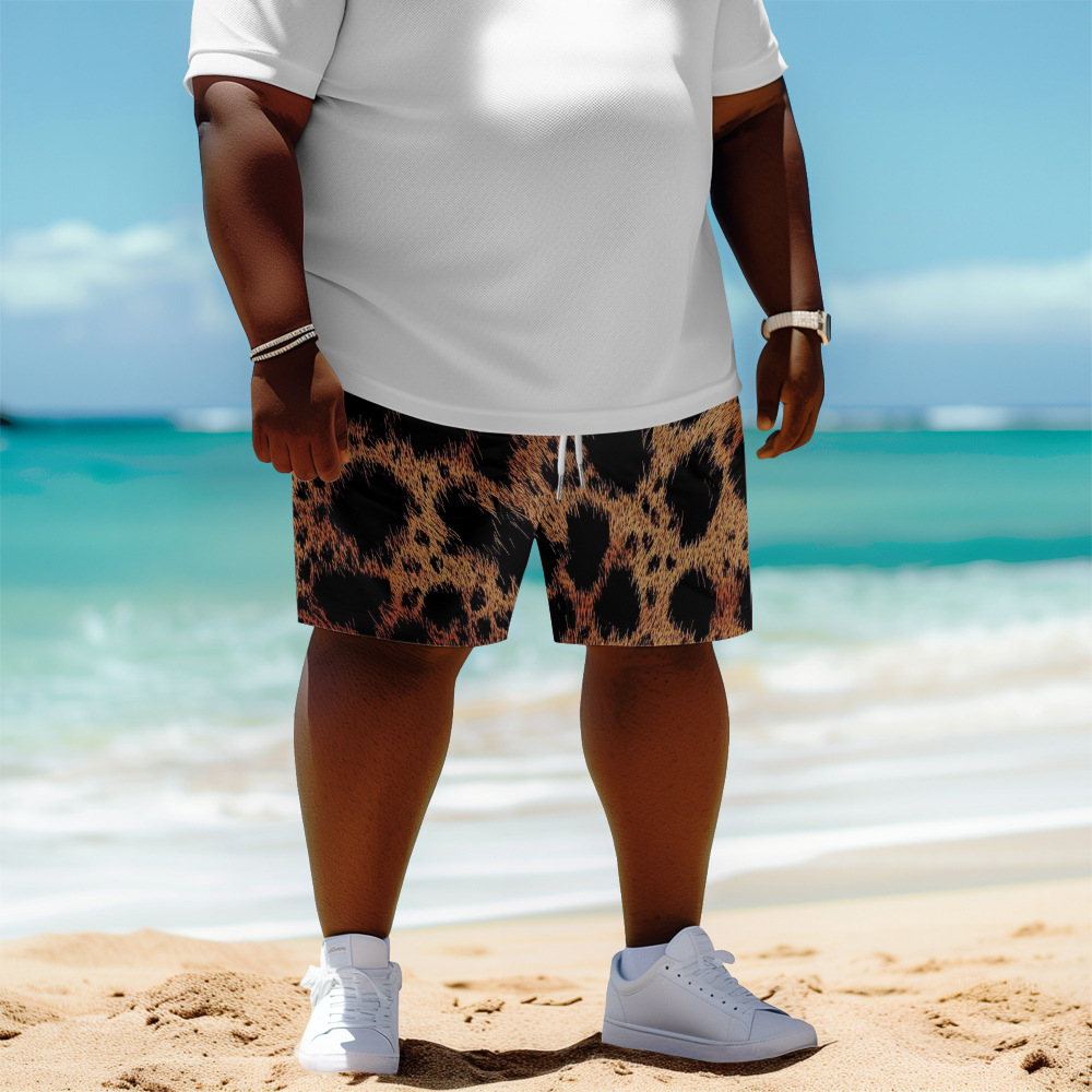 クロスボーダー新しいクリエイティブヒョウ柄プリント大きいサイズファットショーツ夏カジュアルルーズトレンディメンズクォーターパンツ