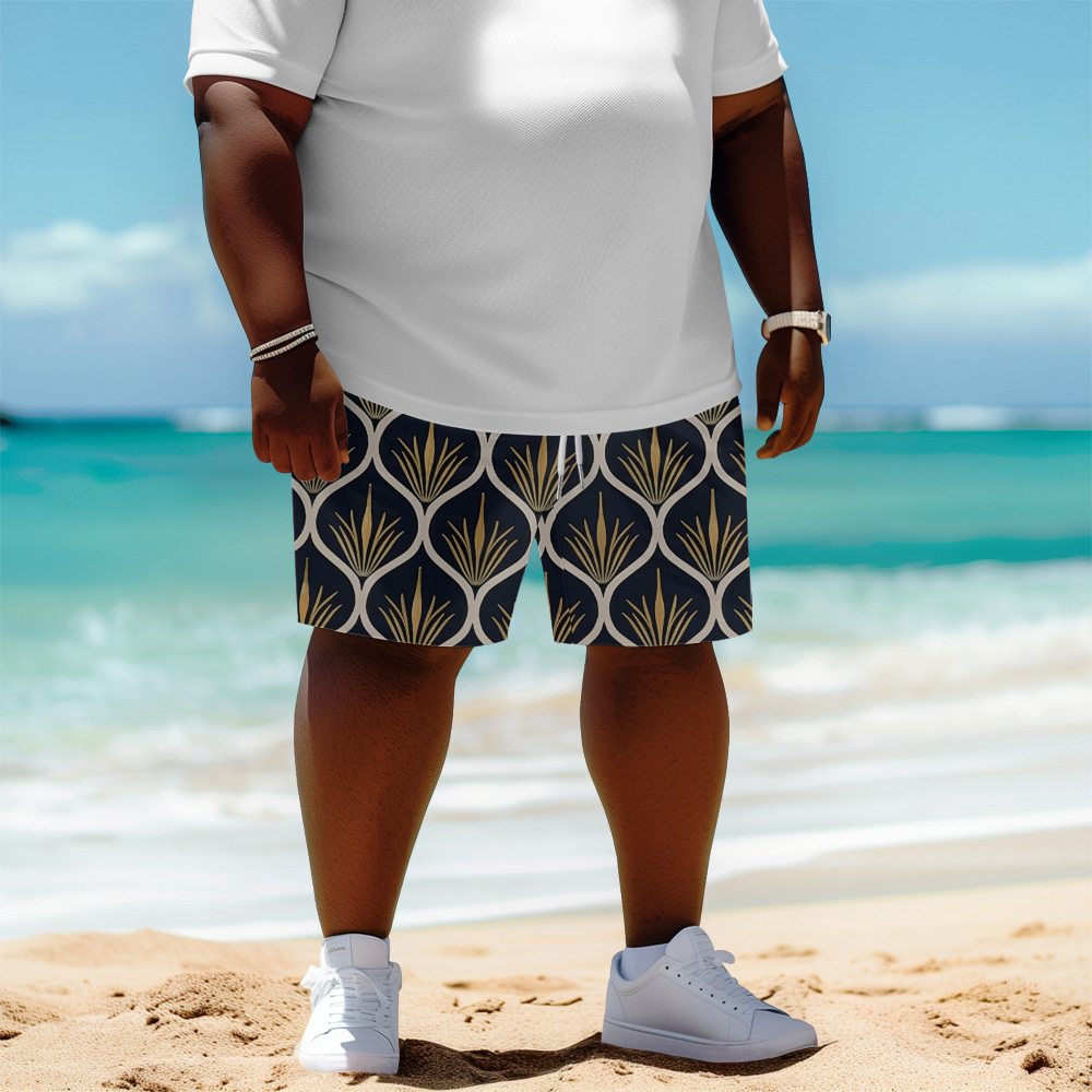 ニッチで多用途な熱帯植物プリントの大きいサイズのファットショーツ、夏用カジュアルでルーズでトレンディーなメンズショートパンツ
