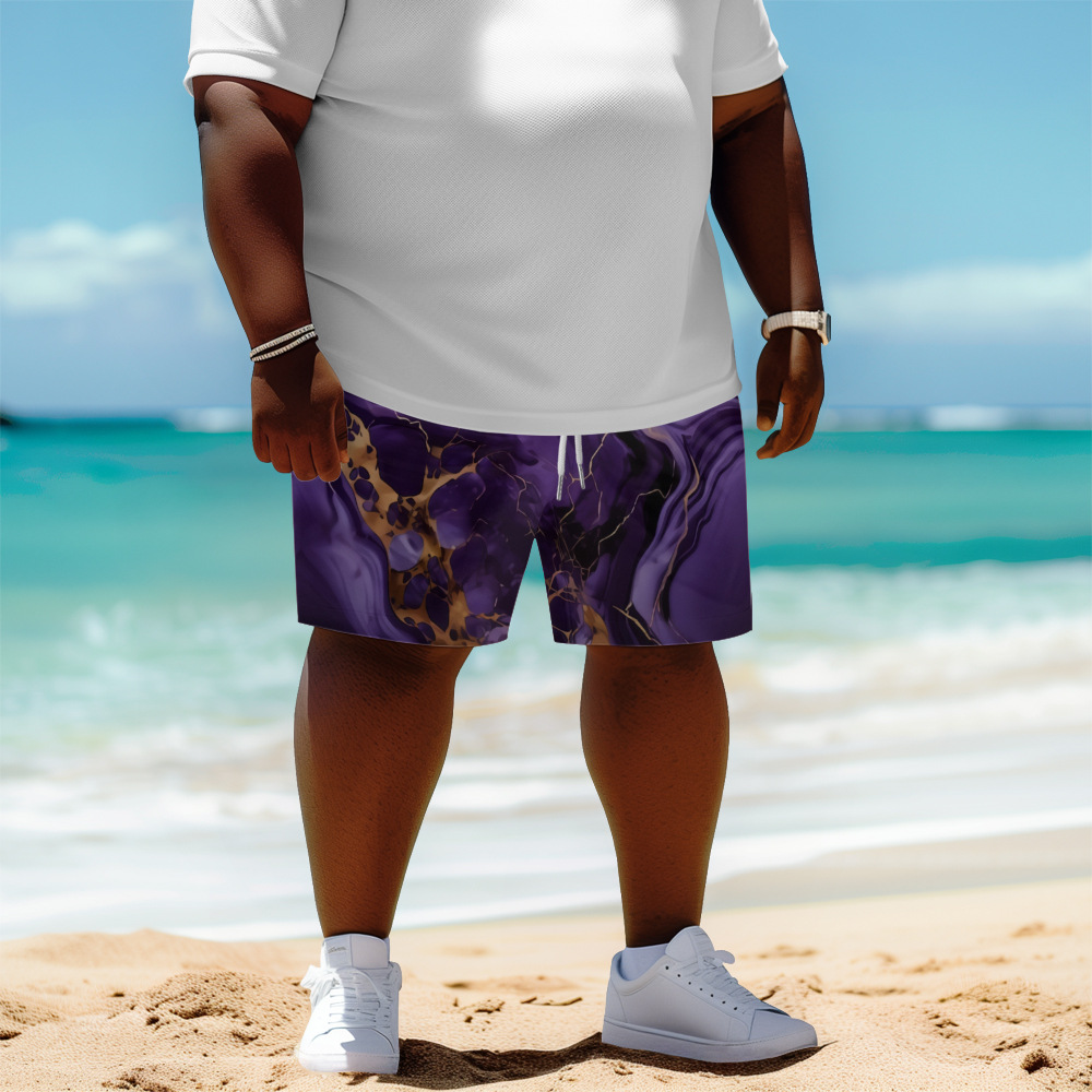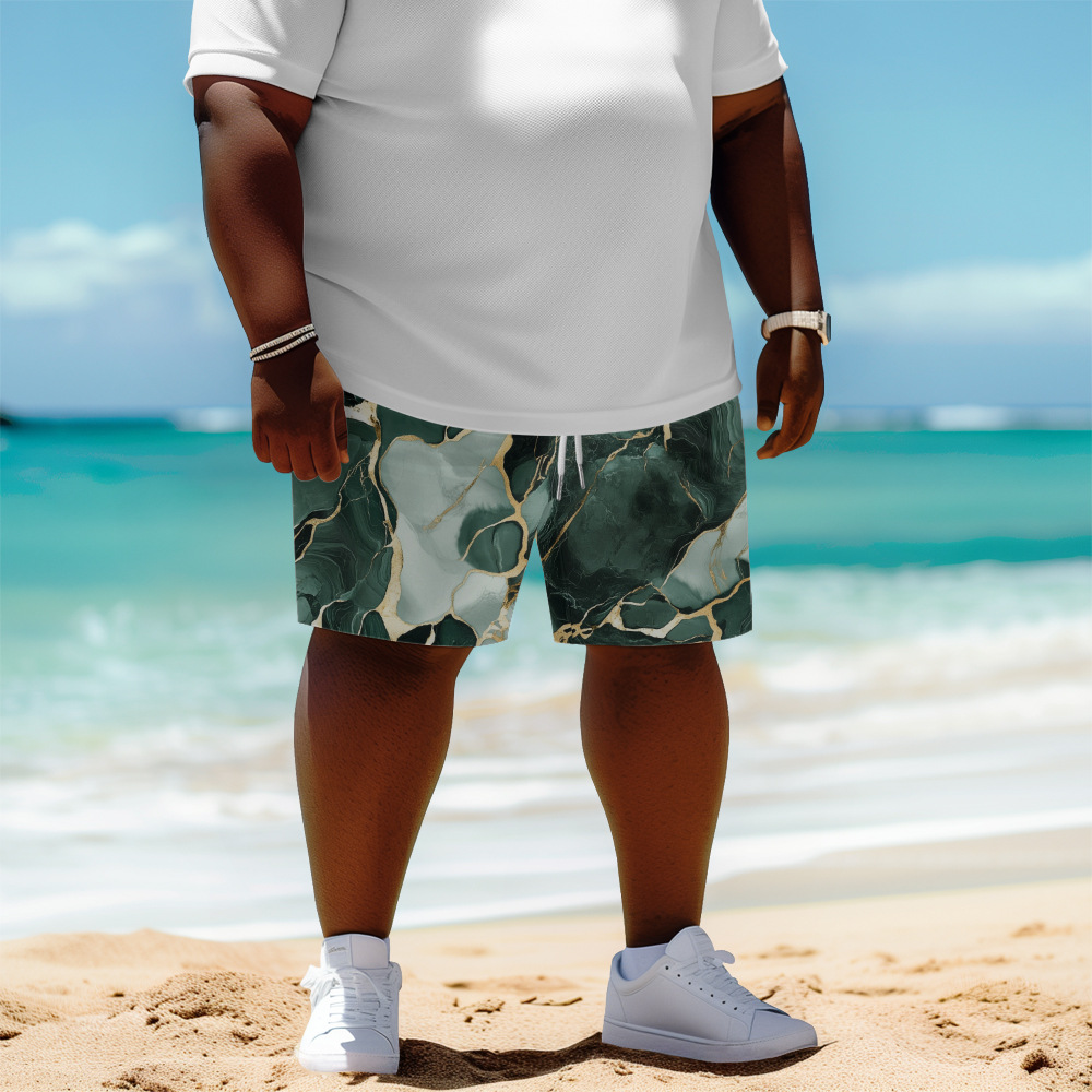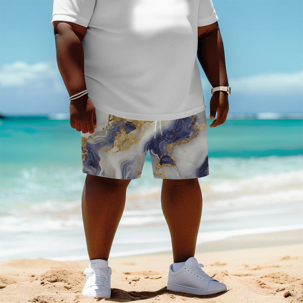 クロスボーダー新しい大理石要素プリント大きいサイズファットショーツ夏カジュアルルーズトレンディメンズクォーターパンツ