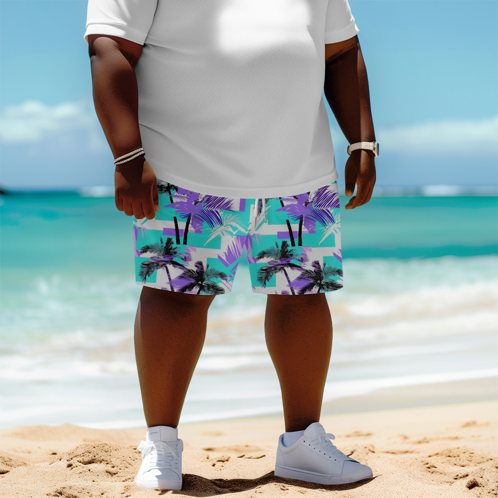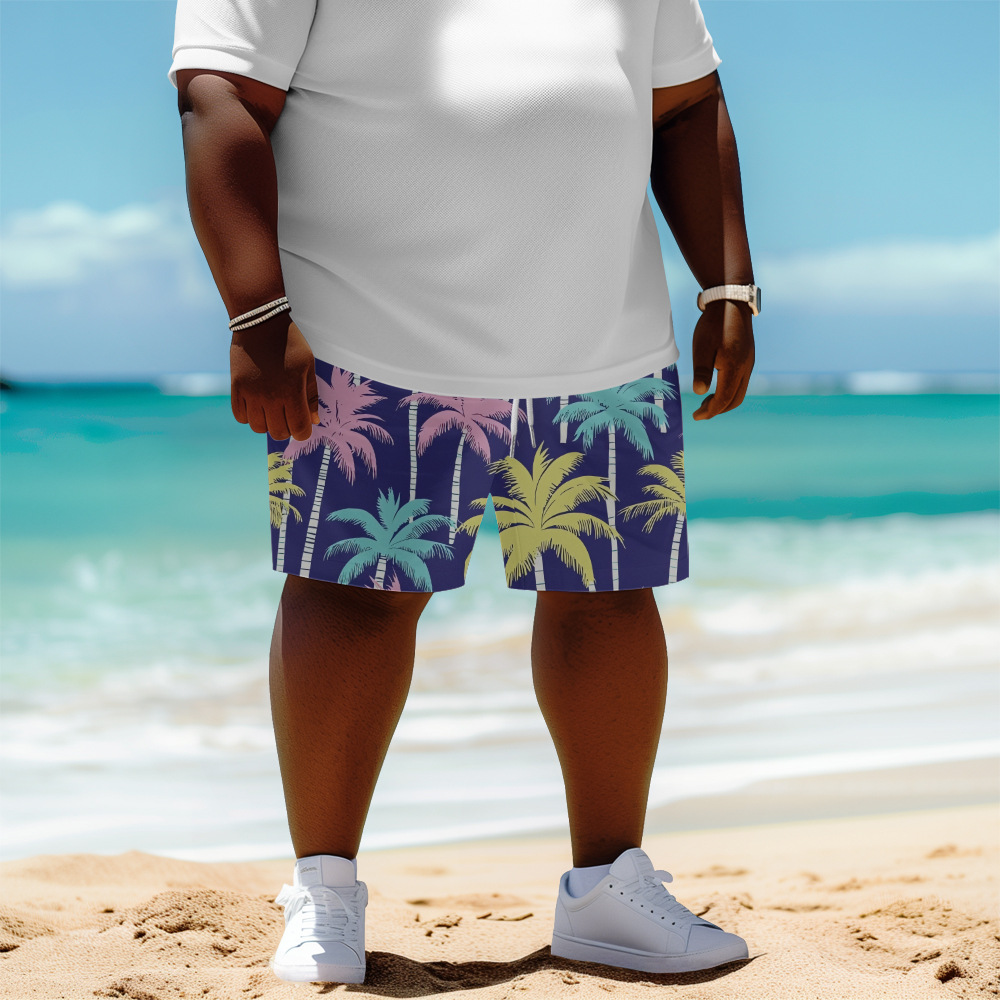 新しいハワイアンバケーションココナッツツリープリント大きいサイズファットショーツ夏カジュアルルーズトレンディメンズ5点パンツ