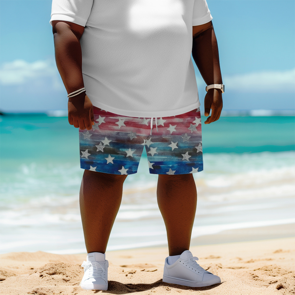 クロスボーダー新しい五芒星パターンプリント大きいサイズファットショーツ夏カジュアルルーズトレンディメンズショーツ