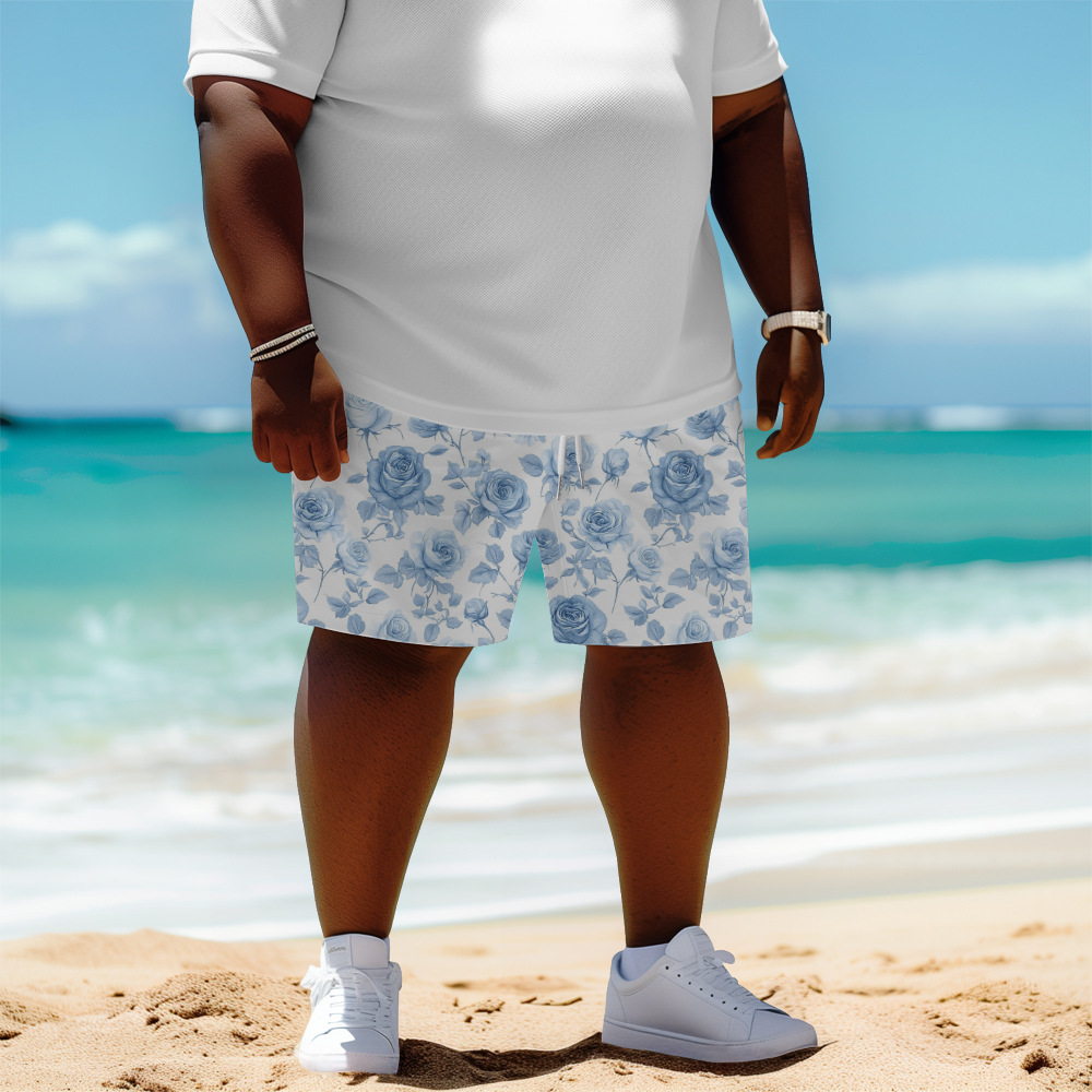 シンプルでファッショナブルな花柄多用途プリント大きいサイズファットショーツ夏カジュアルルーズトレンディメンズショーツ