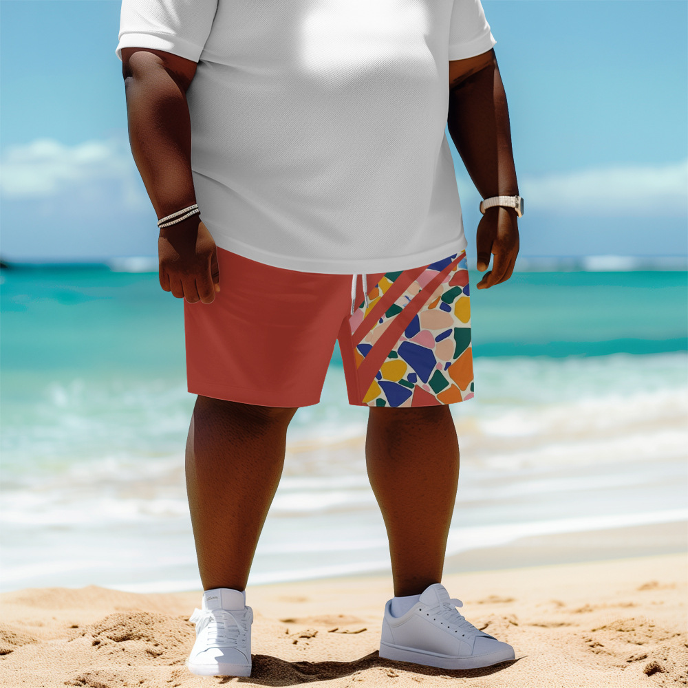 クロスボーダー新作マーブルプリント大きいサイズファットショーツ夏カジュアルルーズトレンドメンズ5点パンツ