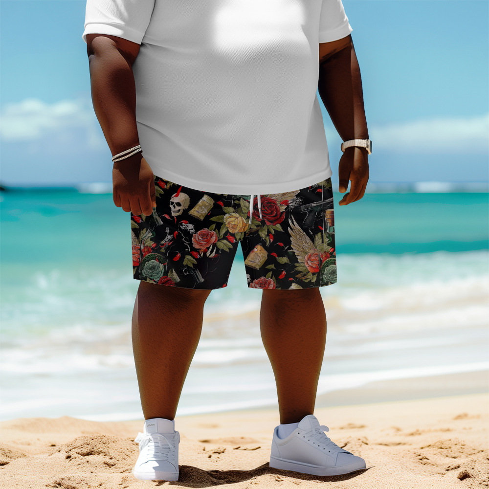 パーソナライズされた面白いスカル要素プリント大きいサイズファットショーツ夏カジュアルルーズトレンディメンズショーツ