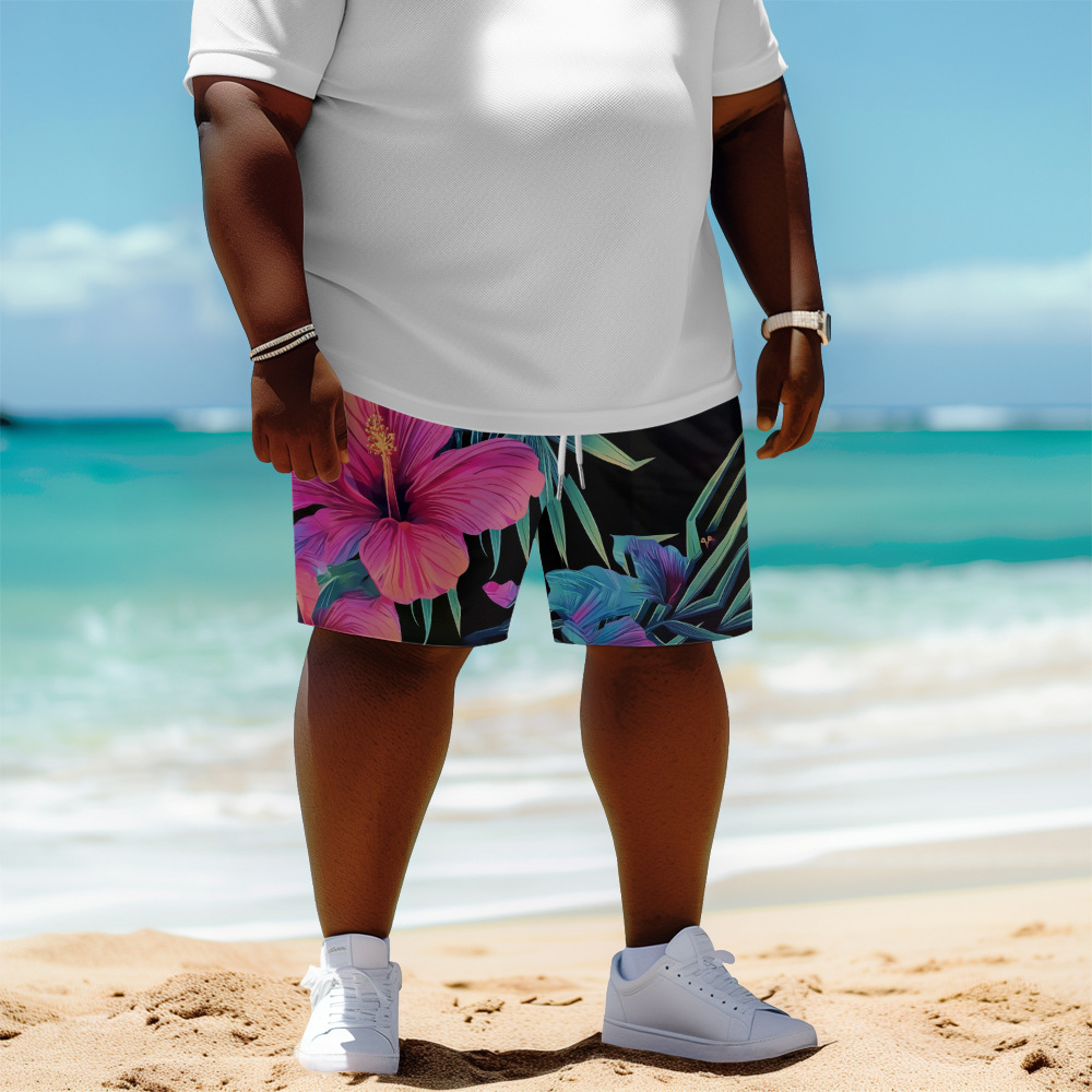 クロスボーダー新しいトロピカルフラワープリント大きいサイズファットショーツ夏カジュアルルーズトレンディメンズクォーターパンツ
