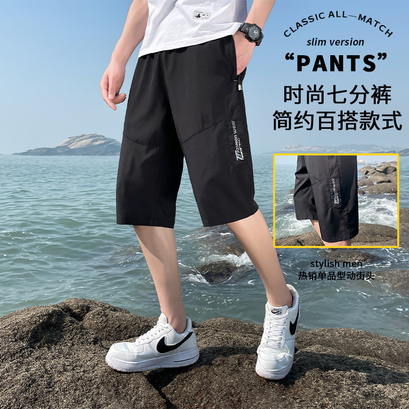 M-8XLの夏のアイスエアコンの7分のズボンの速乾のカジュアルなズボンの男性のズボンの超薄いタイプのゆったりしているスポーツのズボン
