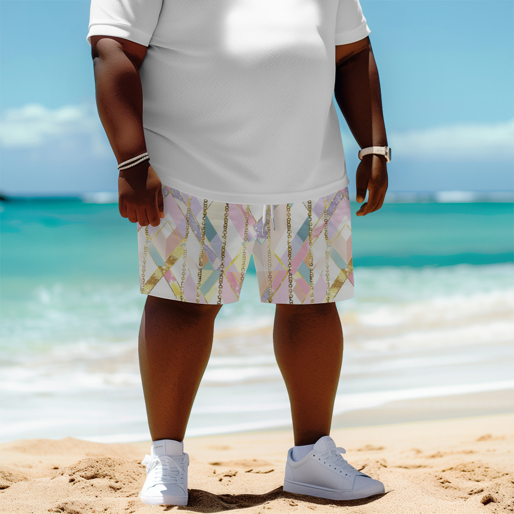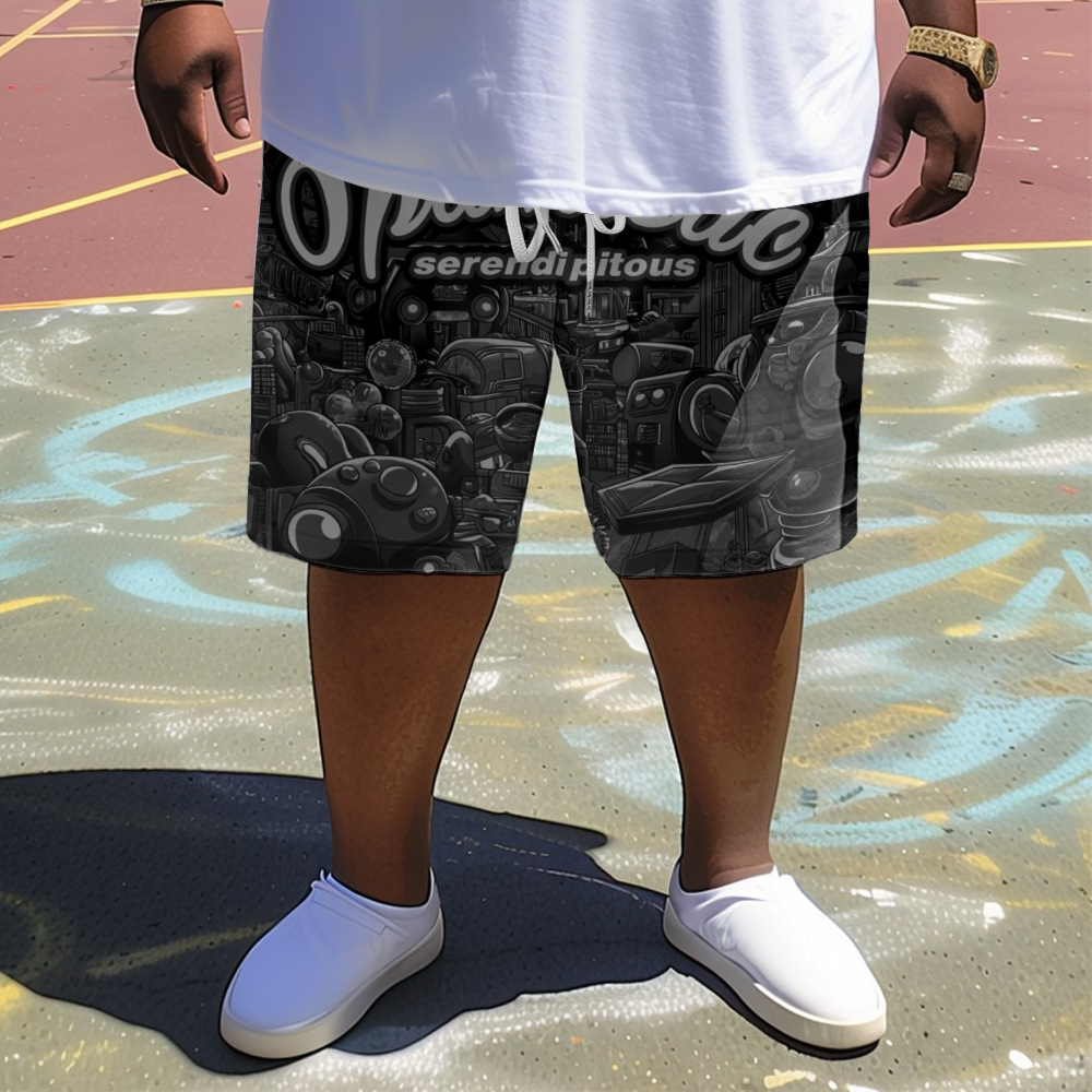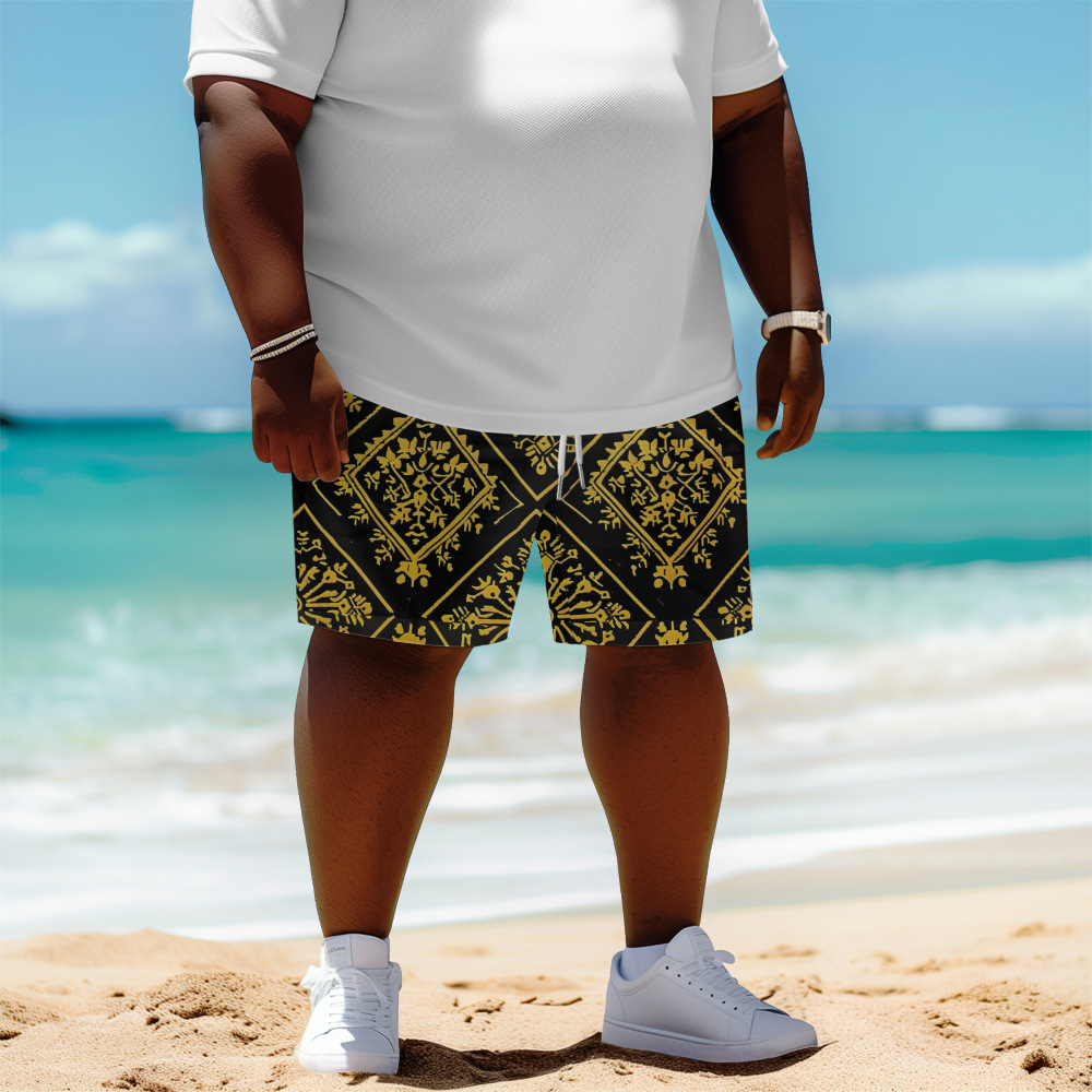 夏カジュアルルーズトレンドメンズクォーターパンツクロスボーダー新アステカ要素プリント大きいサイズファットショーツ