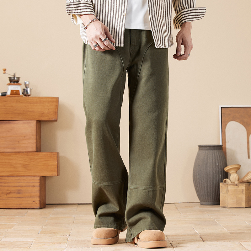 純綿ファッションストレートマイクロラッパ男性服ズボンカジュアルジーンズ三色オプション軍緑カーキコーヒー