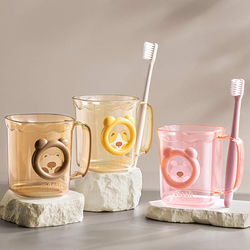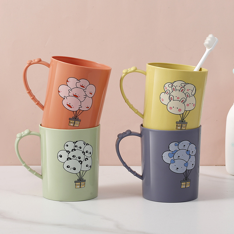 プラスチックマウスウォッシュカップ、シンプルな家庭用ウォッシュカップ、カップル漫画かわいい厚みのある歯ブラシカップ、ハンドル付き歯磨きカップ