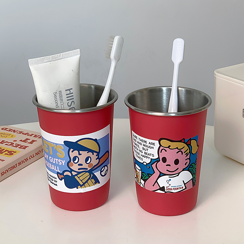 原田治ステンレス304うがいカップ家庭用赤色結婚うがいカップ高顔値付き添い汚れ防止歯ブラシカップ