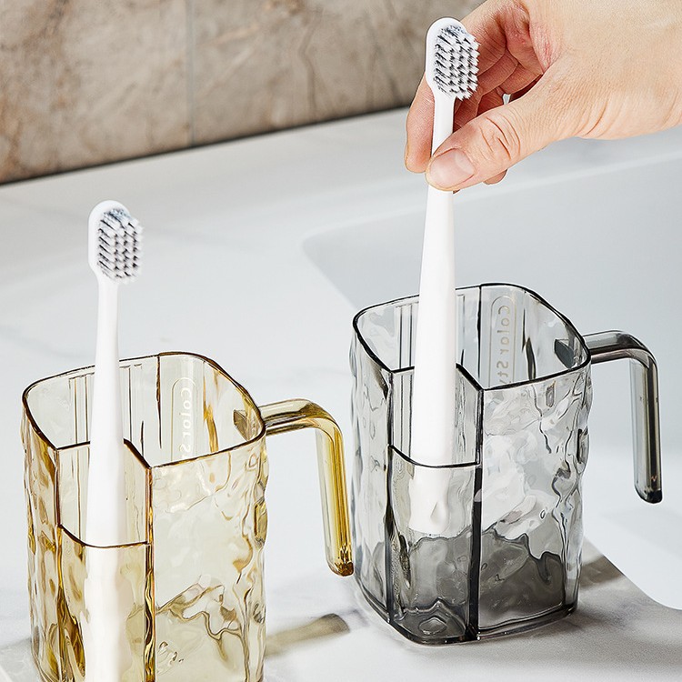洗面カップ 家庭用 カップル向け クリエイティブ 厚手 二層構造 プラスチック製 マウスウォッシュカップ ツートンカラー ハンドル付き 水飲みカップ 歯磨きコップ