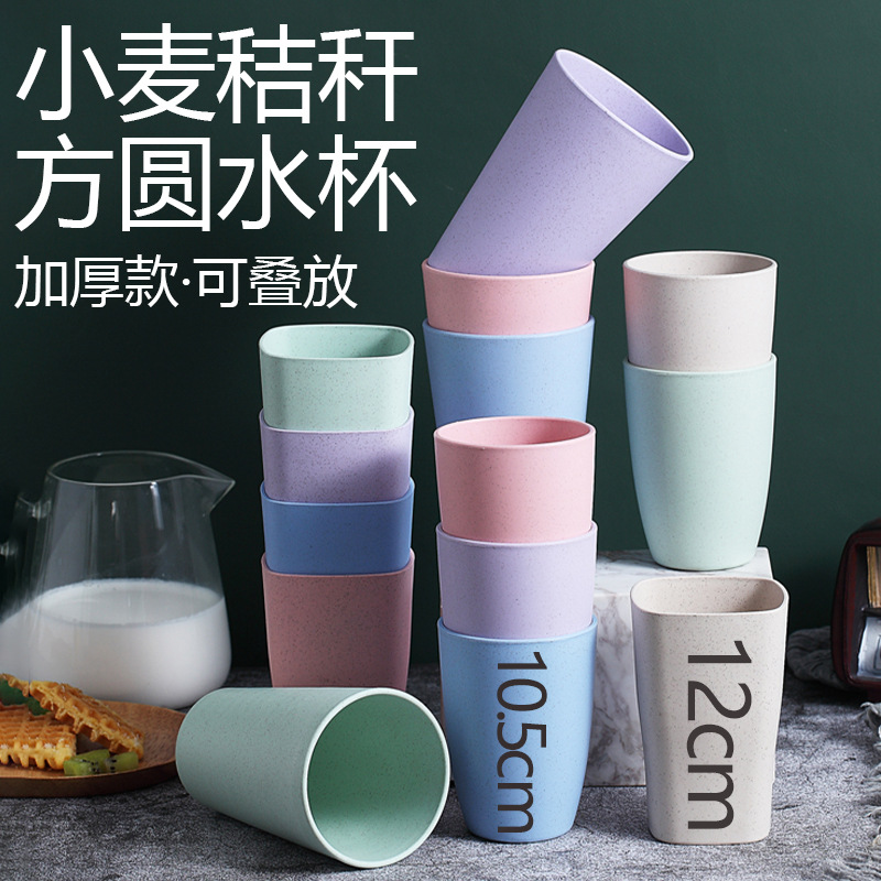 水カップ小麦わら家庭用プラスチック創意歯磨きカップ寮学生うがいカップシンプルカップ円形角型