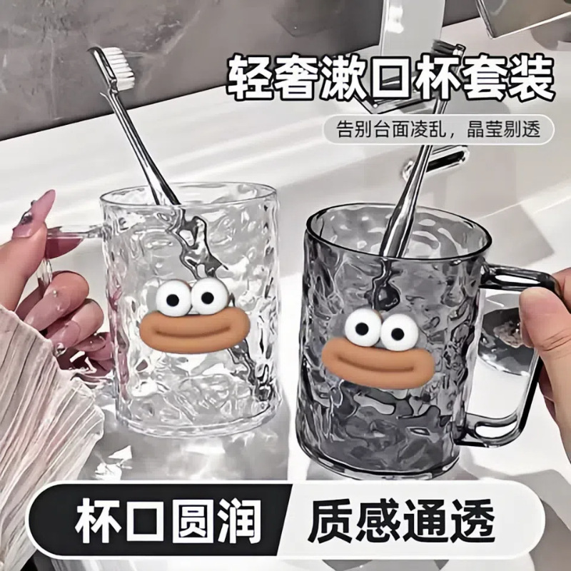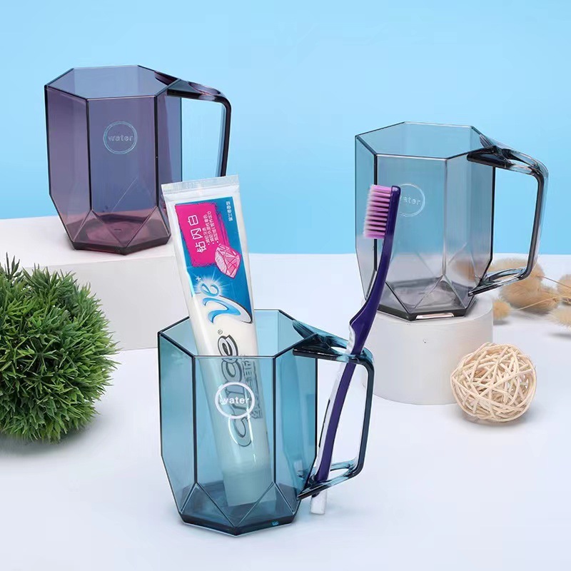 透明高級うがいカップ家庭用ハンドル付き洗面カップシンプルな歯カップ学生寮の穴なし歯ブラシホルダー