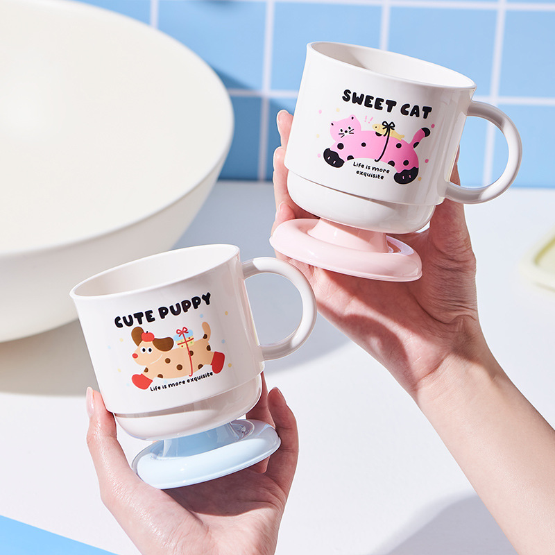 漫画の背の高いマウスウォッシュカップ、見栄えの良い子供用家庭用歯磨きカップ、カップル寮の落下防止新しい歯磨きカップ