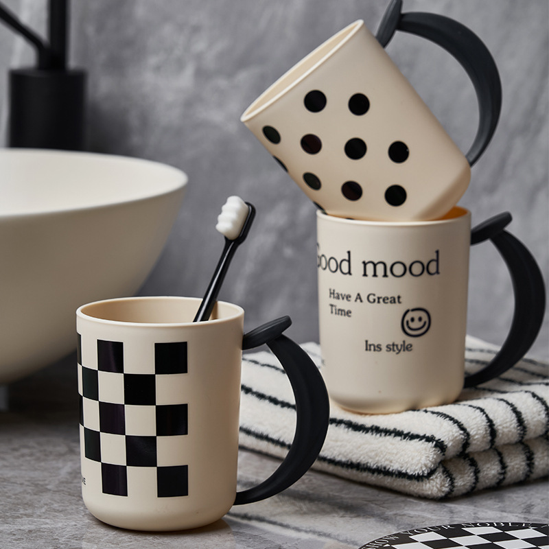 マウスウォッシュカップ、シンプルな歯磨き家庭用ウォッシュカップ、カップル学生寮ハンドル付きウォーターカップ、プラスチック製の厚みのある落下防止モデル