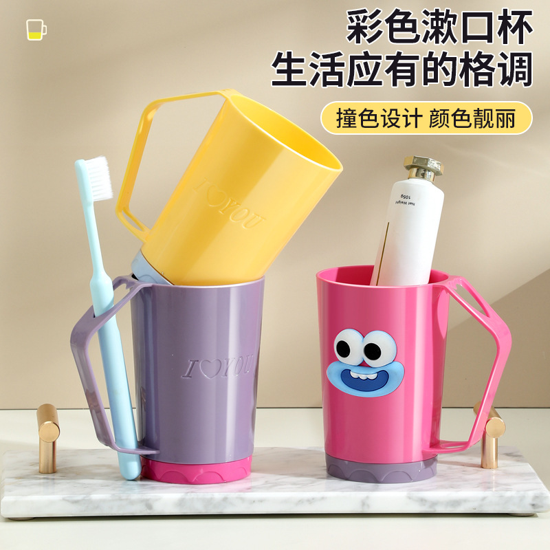 可爱卡通漱口杯家用高颜值牙刷杯带手柄儿童喝水杯情侣洗漱刷牙杯