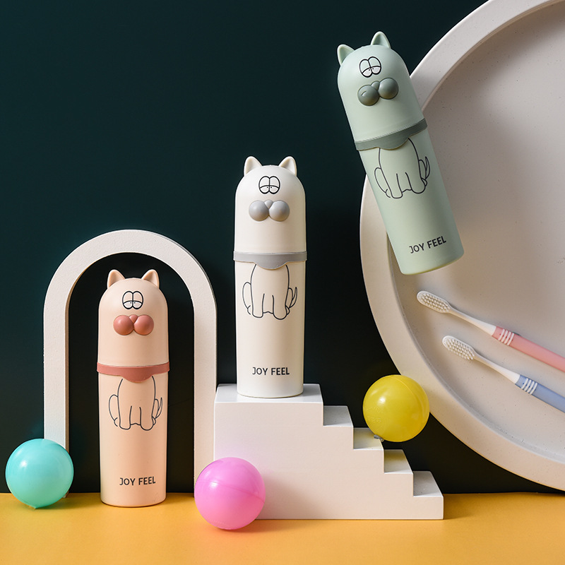 クリエイティブ漫画猫旅行歯ブラシカップかわいい洗面収納二合一歯具ケース多機能浴室洗面カップ