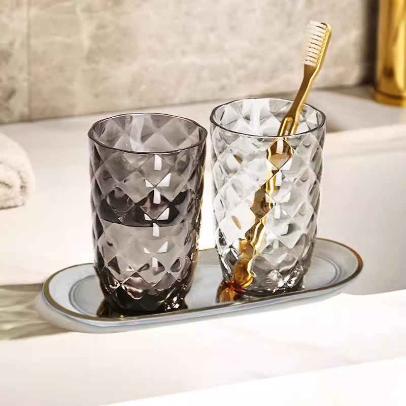 見栄えの良い大容量の透明な家庭用カップル用氷河模様のマウスウォッシュカップ、ホテル用プラスチック製ウォッシュカップ、軽くて高級感のある歯ブラシカップ