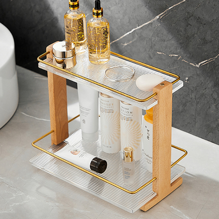 化粧品収納棚浴室デスクトップアクリル二重棚鏡前胡桃木置物台トイレ置物