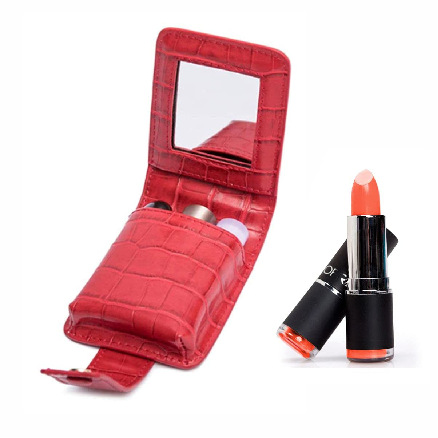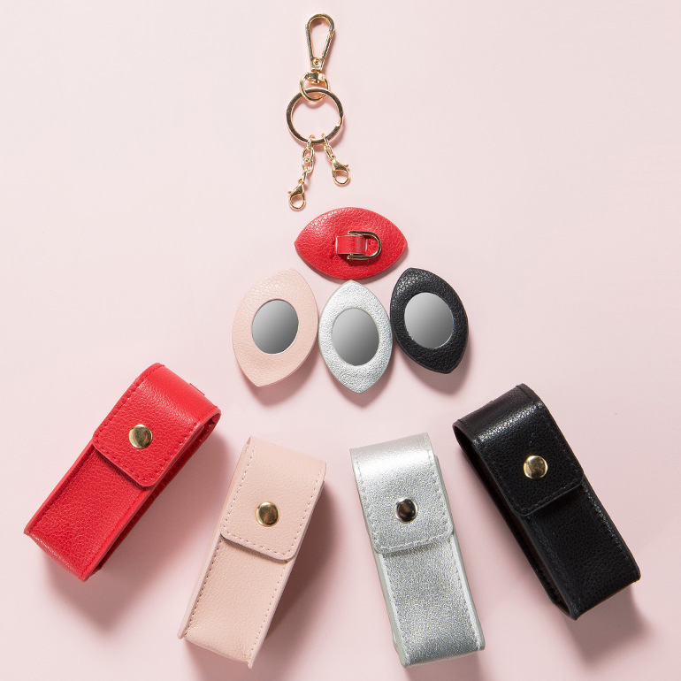 人気の口紅箱ミニ鏡面リップスティックアクセサリー棚高品質pu皮化粧収納ツールキーホルダー