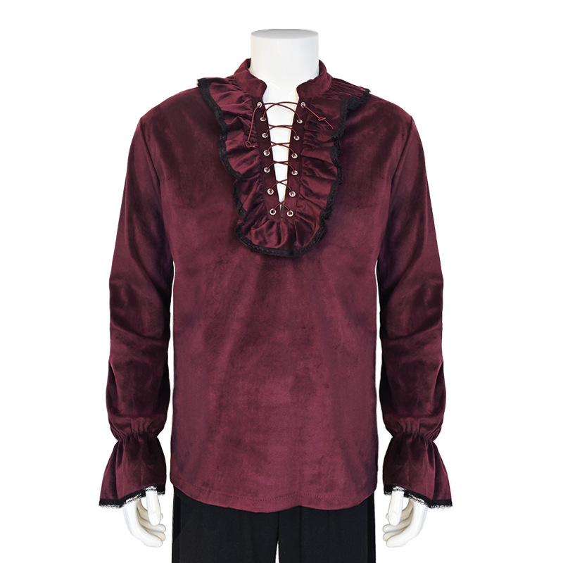 Qianbiandie ヨーロッパとアメリカのメンズプリーツスエードシャツ中世服スチームパンクビクトリア朝のトップインナー