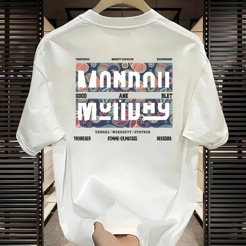 2025 新しい夏のメンズラウンドネック半袖 Tシャツ韓国スタイルスリムフィット弾性パーソナライズされたプリントトレンディな半袖トップ