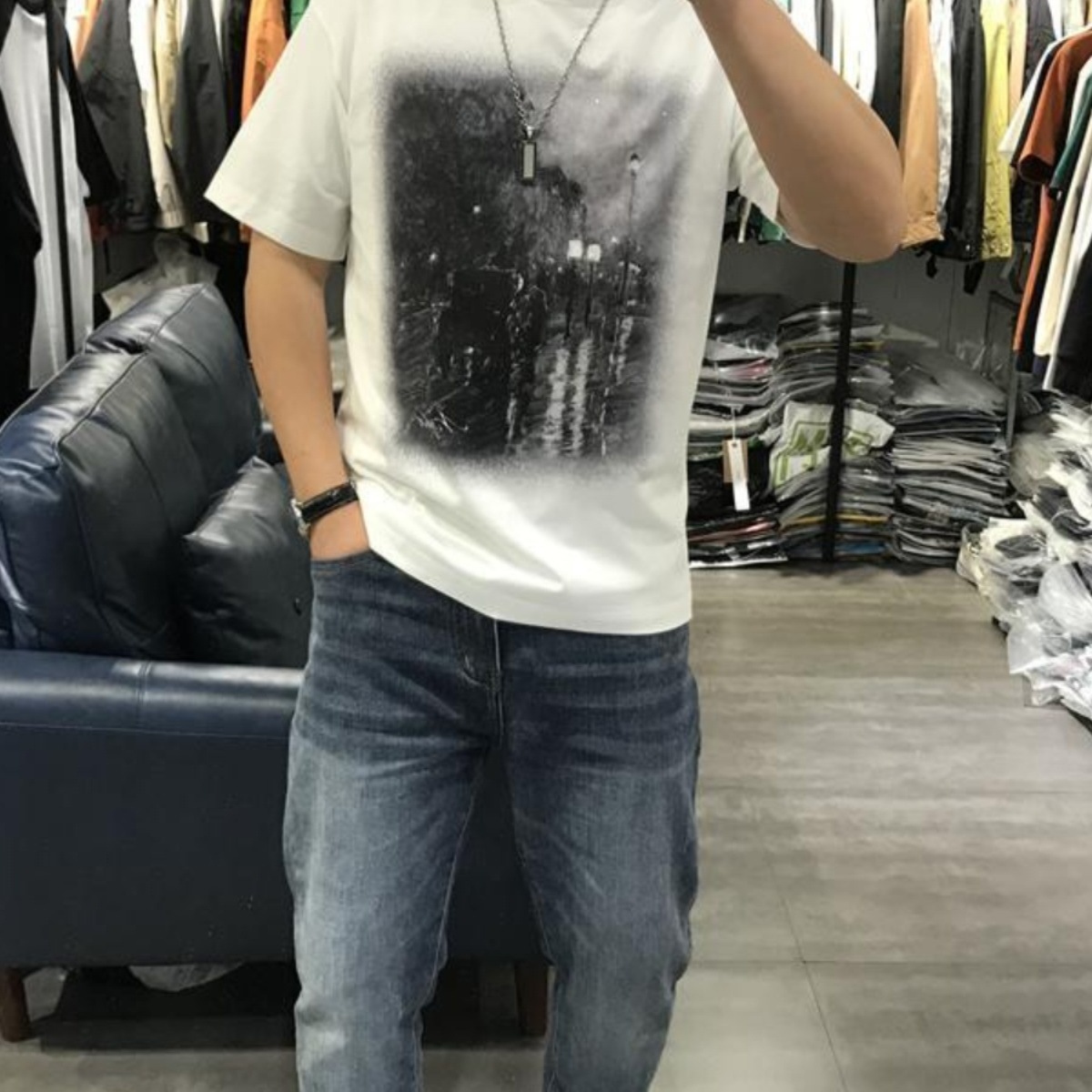 厚手の半袖Tシャツメンズ夏新作ラウンドネックプリントトレンドブランド純綿服カジュアル万能Tシャツトップス
