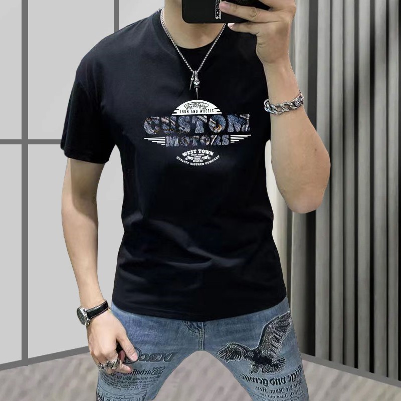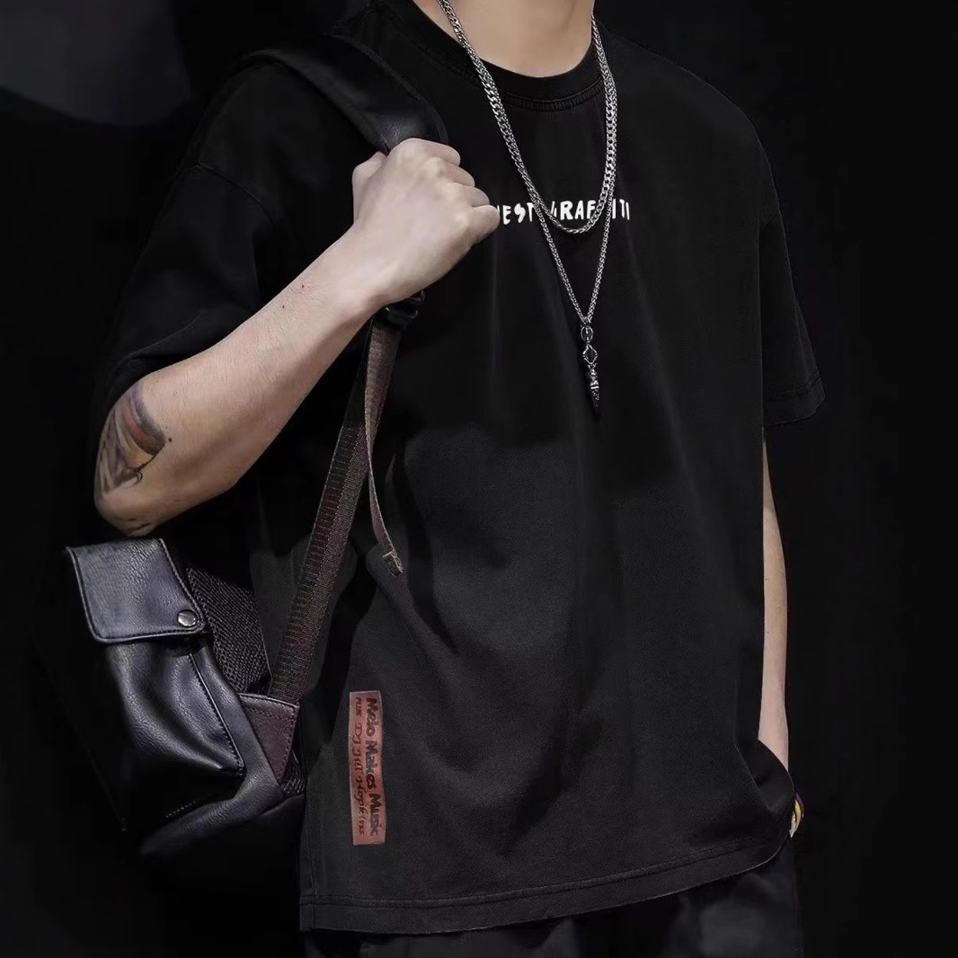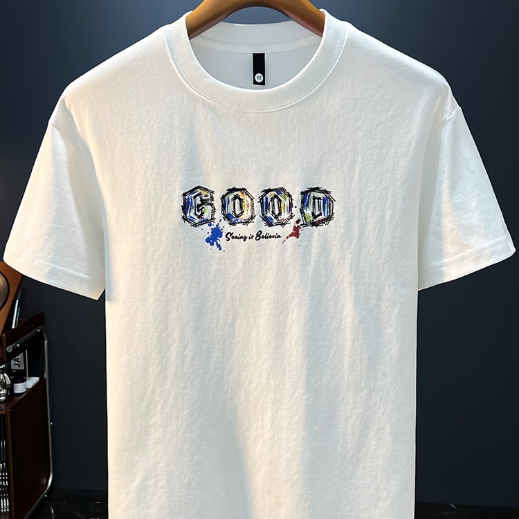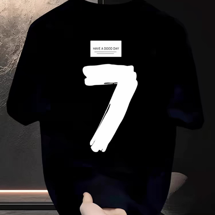 秋の新作半袖メンズカジュアルラウンドネックルーズストレッチTシャツトレンド半袖123レタートップボトム