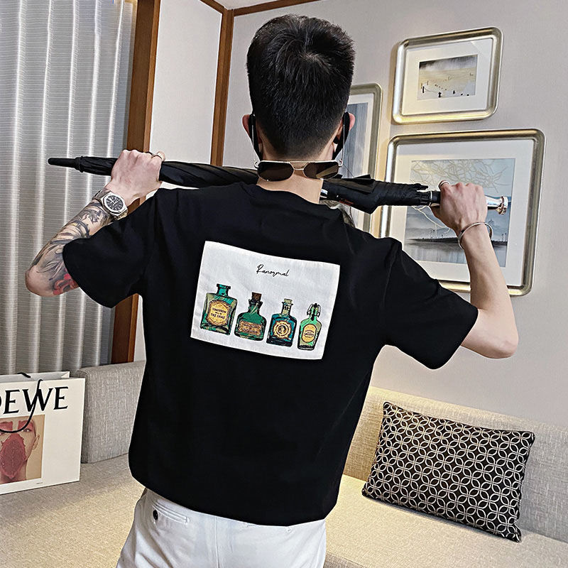 メンズ半袖Tシャツ夏韓国版トレンド紳士服ファッションプリントラウンドネックスリム半袖ボトリングシャツトレンド