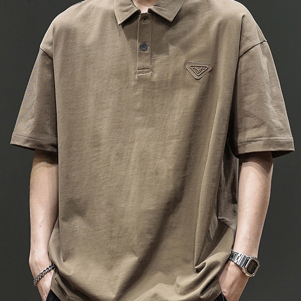 クロスボーダーヘビーウェイトソリッドカラーポロシャツメンズ2025年夏新作トレンディブランドルーズカジュアル半袖Tシャツ男の子ハンサム