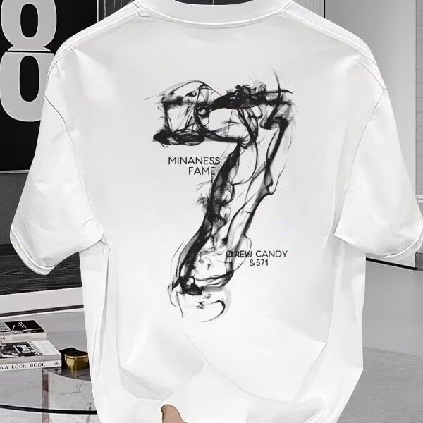 2025 夏の新半袖 tシャツメンズスプラッシュインクプリントイン tシャツトレンディなブランドルーズヒップホップスタイルラウンドネックトップ