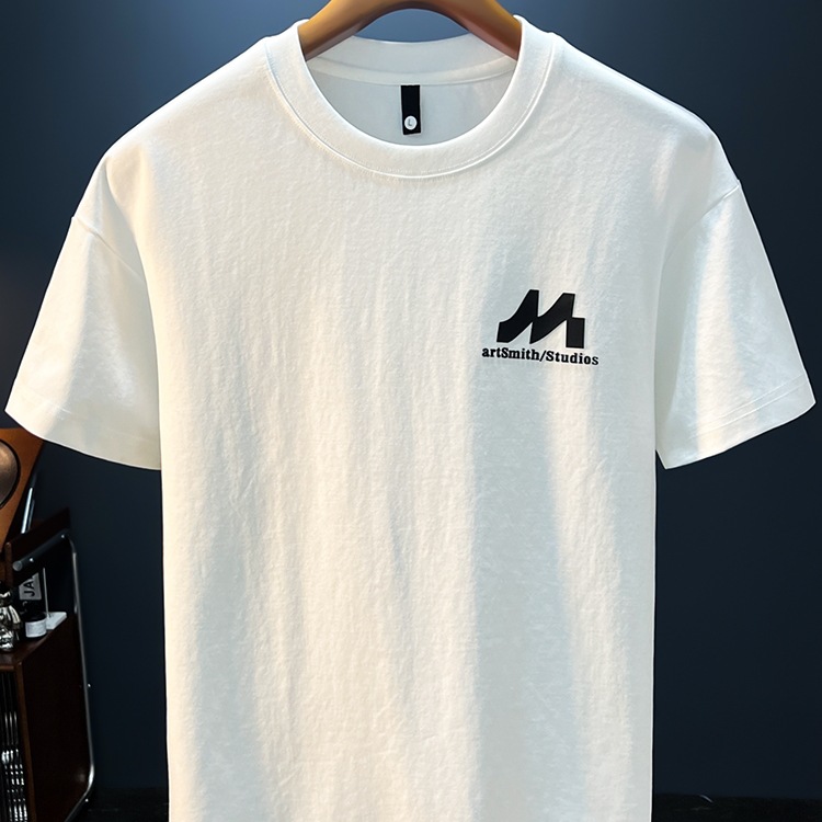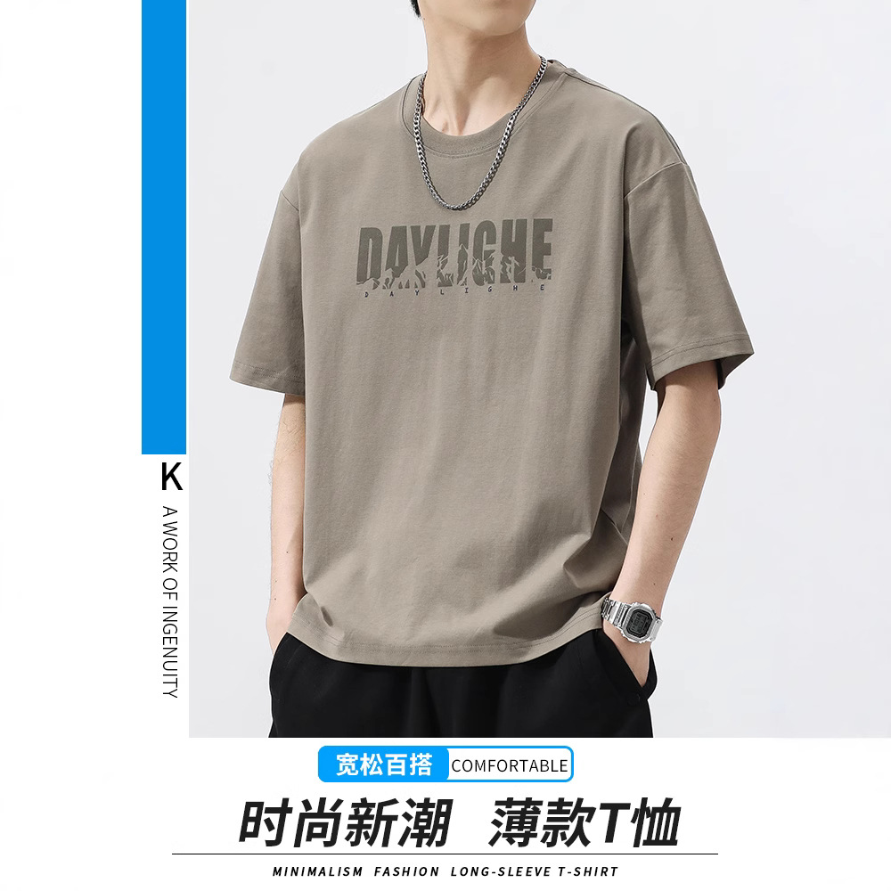 夏半袖TシャツメンズカジュアルヘビーウェイトTシャツラウンドネックプリントアメリカンハンサムルーズ半袖万能トップ