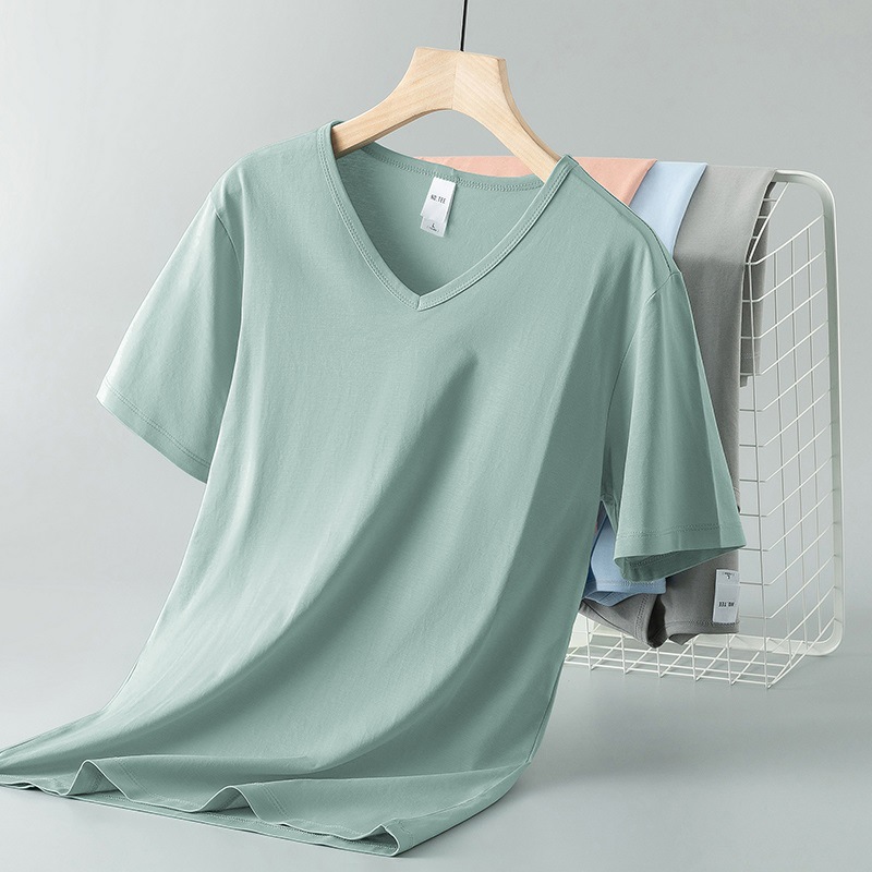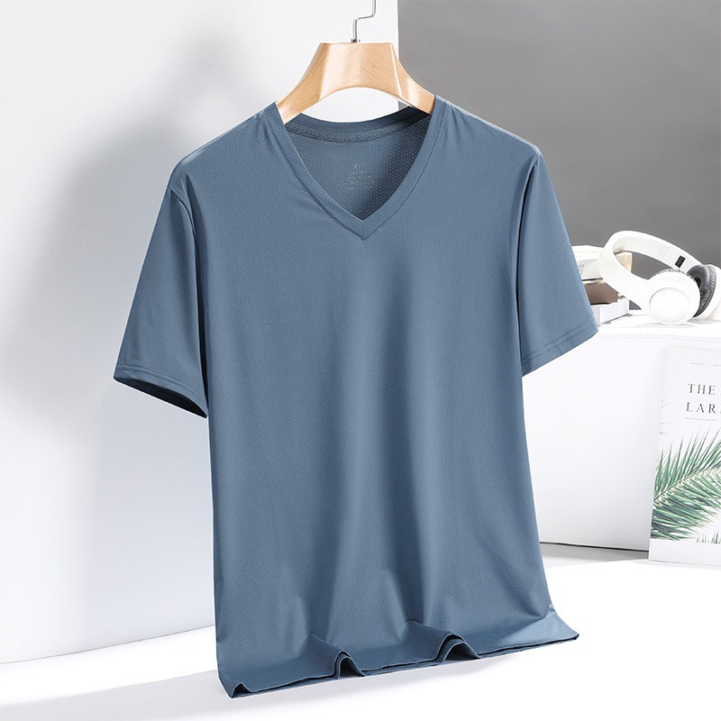 モーダルアイスシルク半袖Tシャツメンズ夏Vネック無地トップス涼しく通気性速乾性半袖Tシャツ
