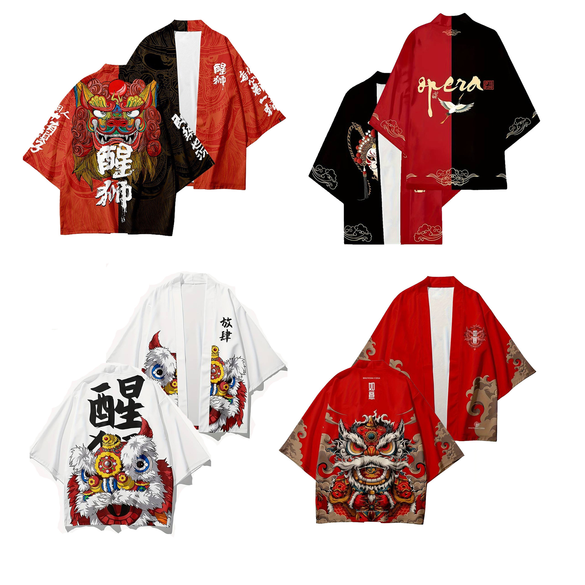 国境を越えた新製品ホット販売日焼け止め服中国風ライオン覚醒夏原宿着物ローブジャケット羽織マントカーディガン