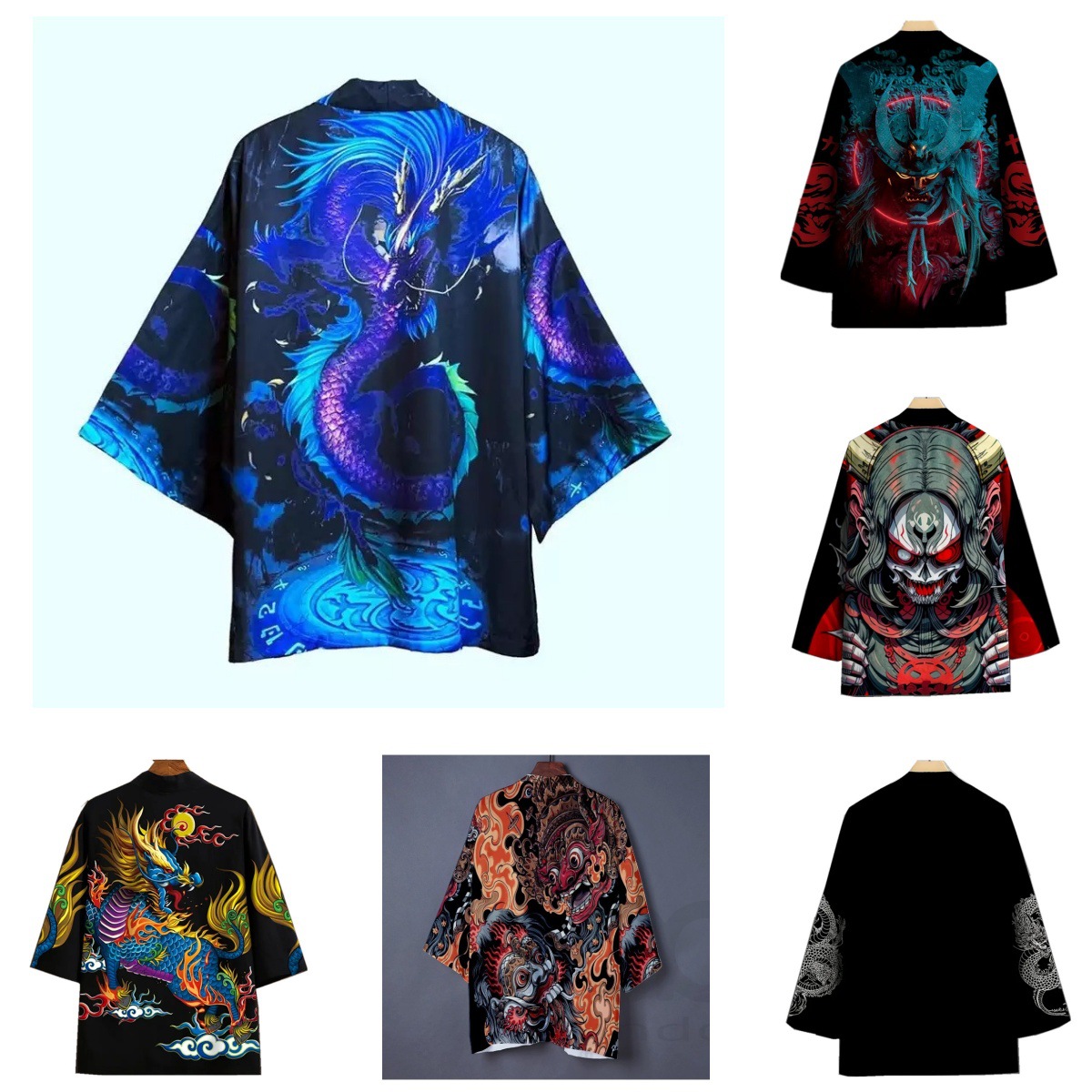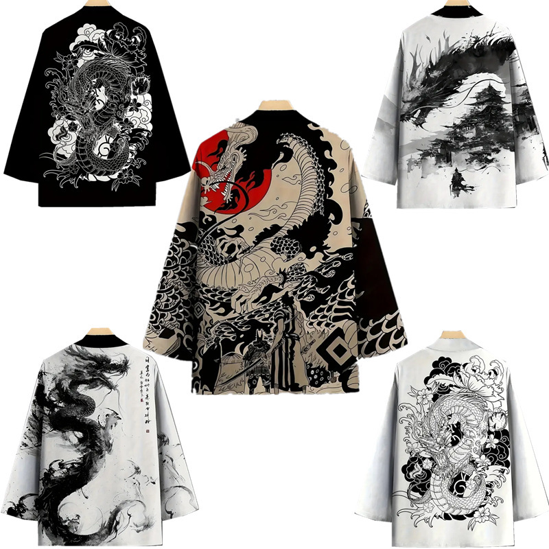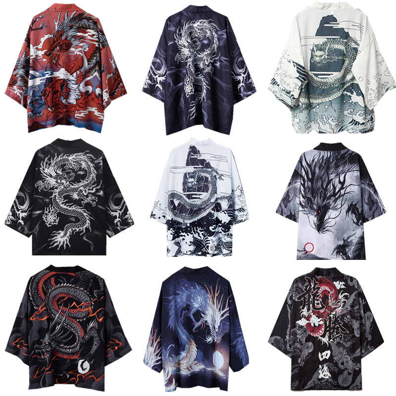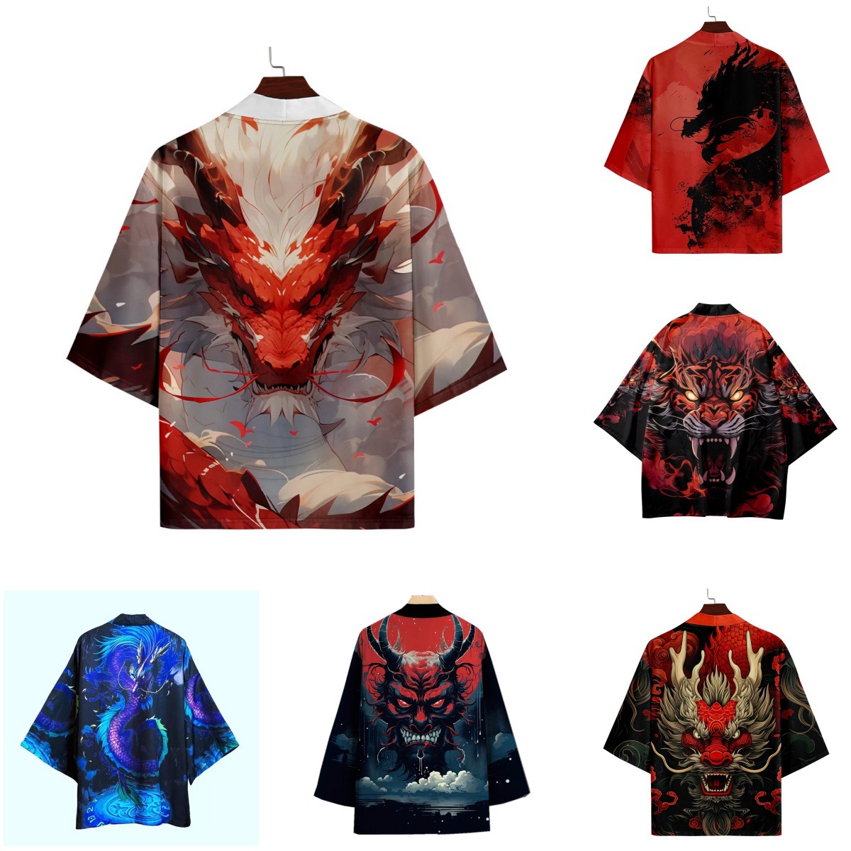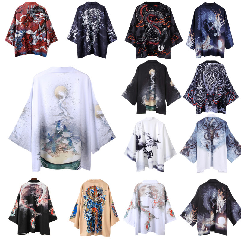 クロスボーダー夏の中国風龍騰図カーディガン着物マント羽織ローブ浮世絵マント3Dデジタル印刷