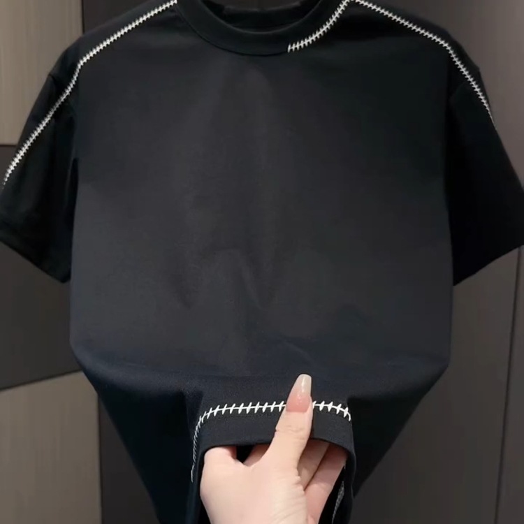 トレンディなブランド半袖 T シャツメンズ 2025 夏の新しいスタイルのハーフスリーブトップステッチラウンドネックトップハンサムで多用途なカジュアル半袖