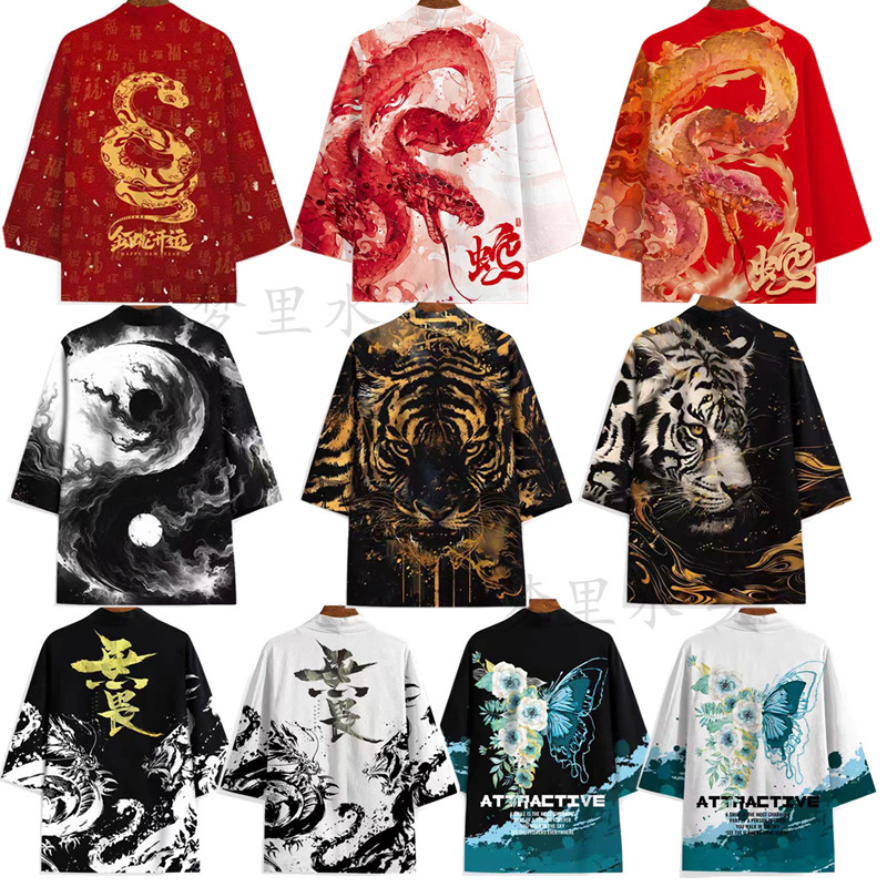 クロスボーダー 2024 新製品中国風要素ジャケット七分袖夏原宿着物ジャケット羽織マントカーディガン