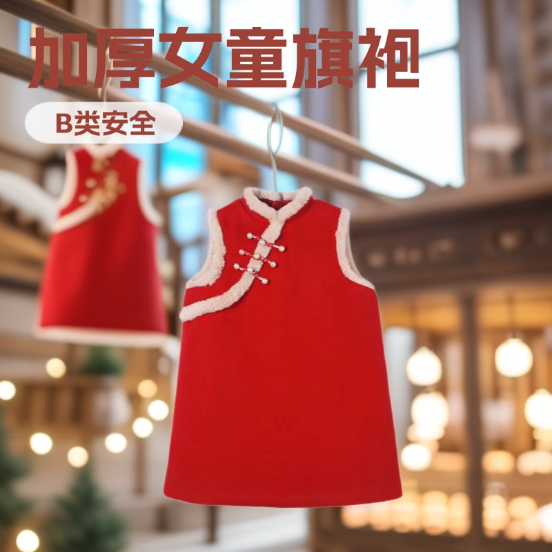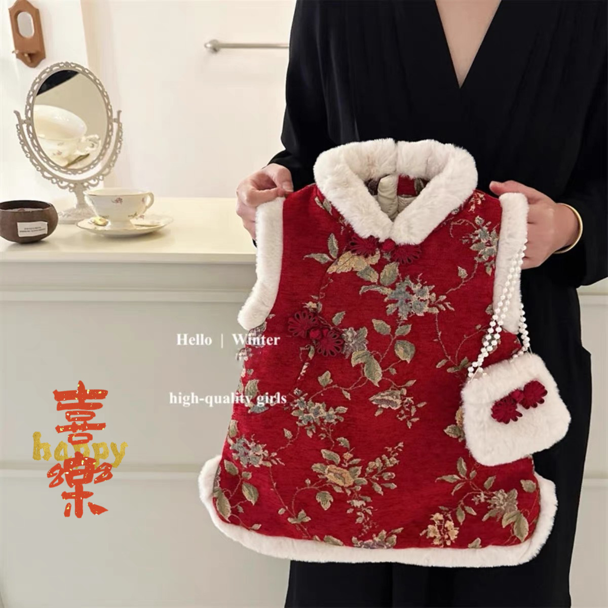 女児用チャイナドレス、ベストドレス、2025年冬用ワンピースセット、幼児・子供用新年のお祝い服