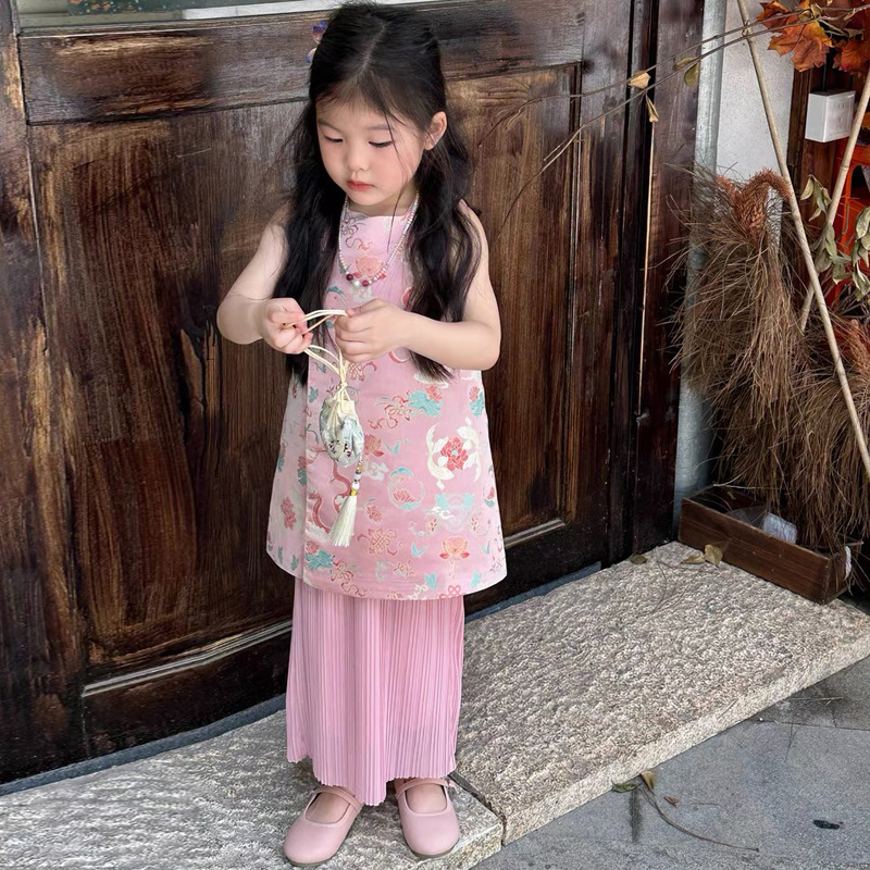 女の子チャイナドレス中国風夏レトロワンピース国風漢服新型子供洋気中国風ノースリーブチャイナドレス
