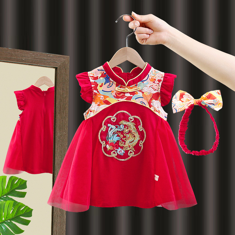 女の子の改良チャイナドレス2024新型の女の子の赤ちゃんは周写真を撮ってレトロな中国風の誕生日ドレスのワンピースを撮ります。