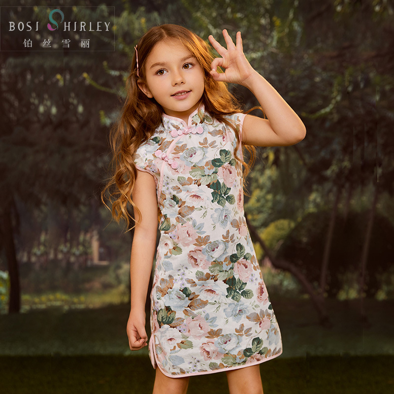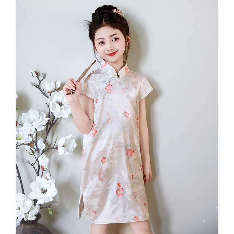 プラチナシルク雪麗女児旗袍夏新作ワンピースおしゃれ花柄中国風漢服唐装子供旗袍
