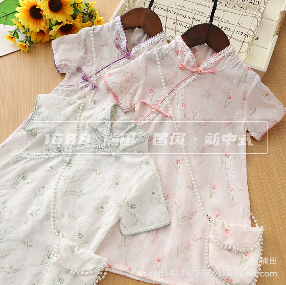 チャイナドレス子供女の子国潮女の子ワンピース汉服女宝スカート夏スタイルプリンセススカート2024潮スカート子供