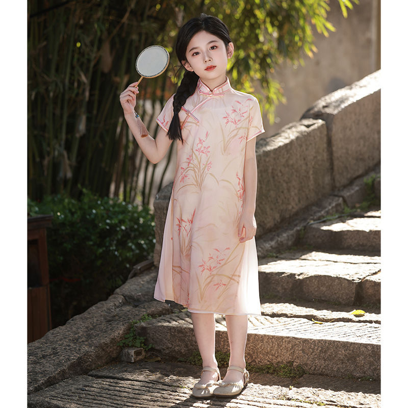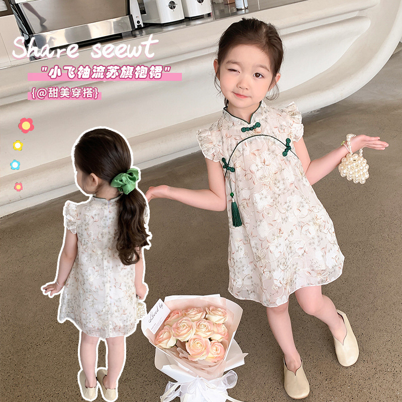 2025年新作 子供用チャイナドレス 女の子 夏 中国風 ガールズ 新中式ワンピース 薄手改良版 女の子用チャイナドレス