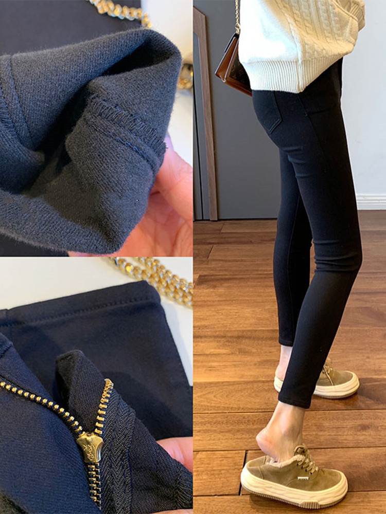 12009 # 小柄な高腰ガードル鉛筆煙管衛ズボンとベルベットの厚い黒いカウボーイサメズボンの女性秋冬