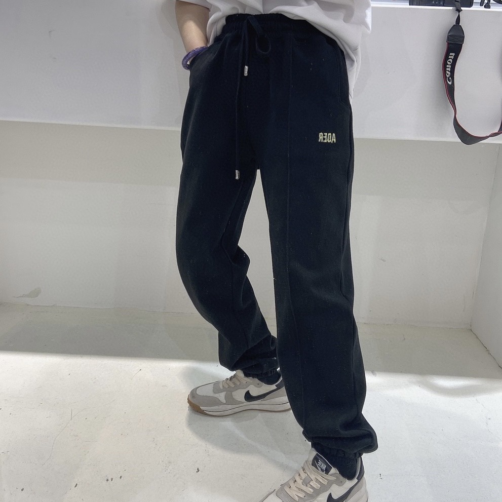 Der長ズボン折り紙アルファベット刺繍プリント花束足長ズボン不規則ポケット春秋カップル衛ズボン